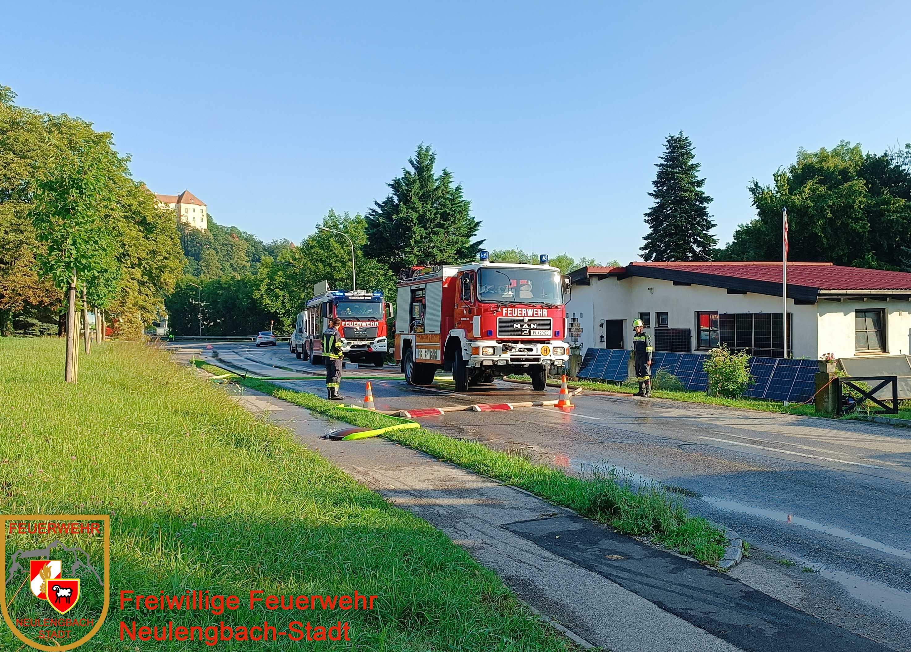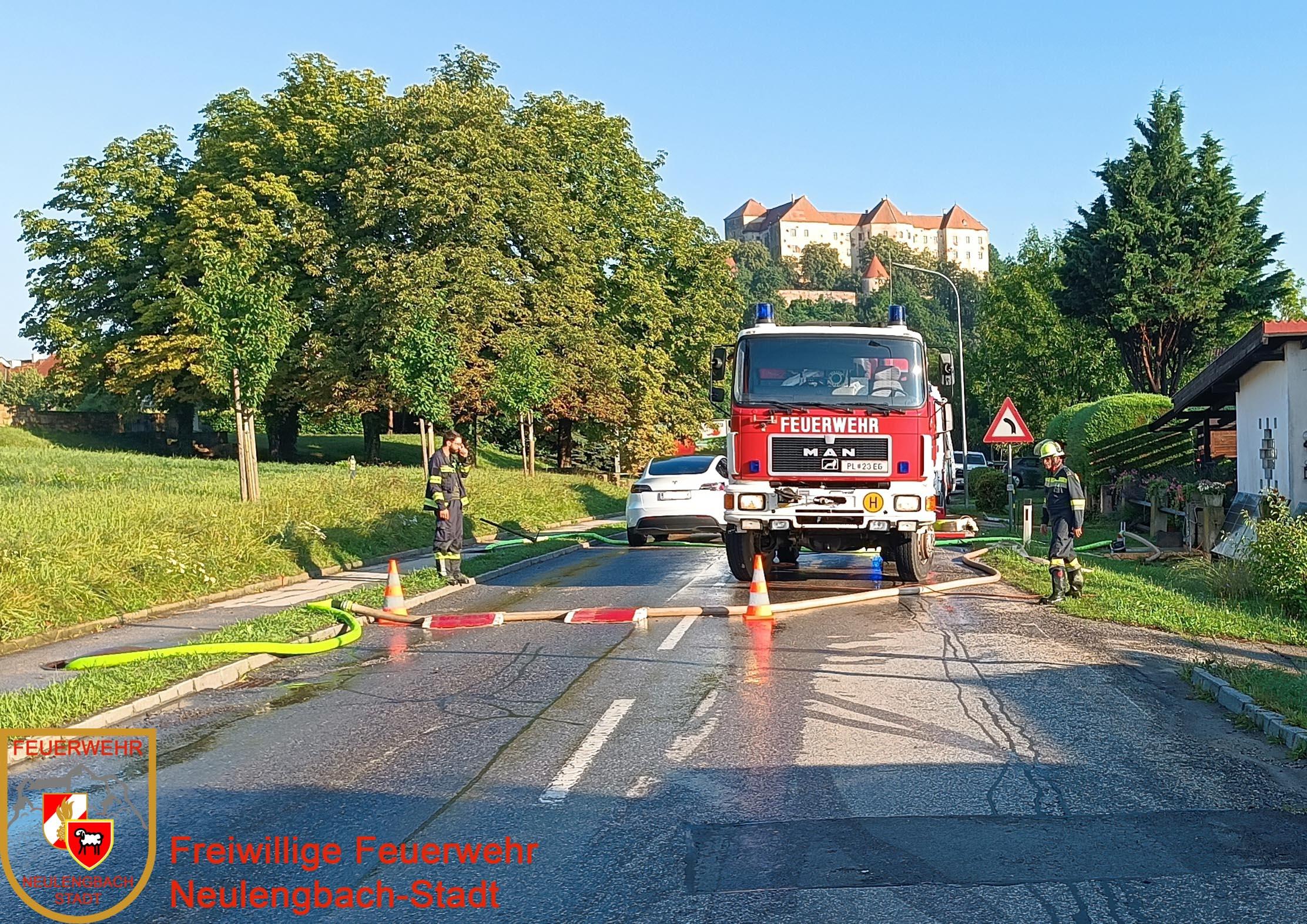 Am 19.06.2025 um 06:16 Uhr wurde die Freiwillige Feuerwehr Neulengbach-Stadt zu einem Wasserrohrbruch auf die B44 alarmiert. Ein Anrainer hatte den Notruf gewählt, da vor seinem Haus ein Rohrbruch aufgetreten war und das ausströmende Wasser bereits seinen Keller flutete.