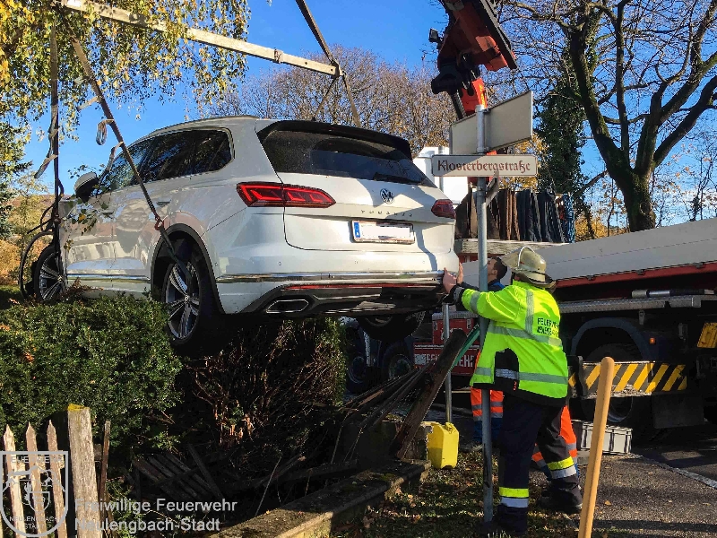 Am 14. November wurde die Freiwillige Feuerwehr Neulengbach-Stadt um 11:57 Uhr zu einer Fahrzeugbergung alarmiert. Auf der Klosterbergkreuzung waren zwei PKW kollidiert, wobei eines der beiden Unfallfahrzeuge auf spektakuläre Art und Weise den Zaun und die Gartenhecke zum Grundstück der Strassenmeisterei Neulengbach durchbrach.