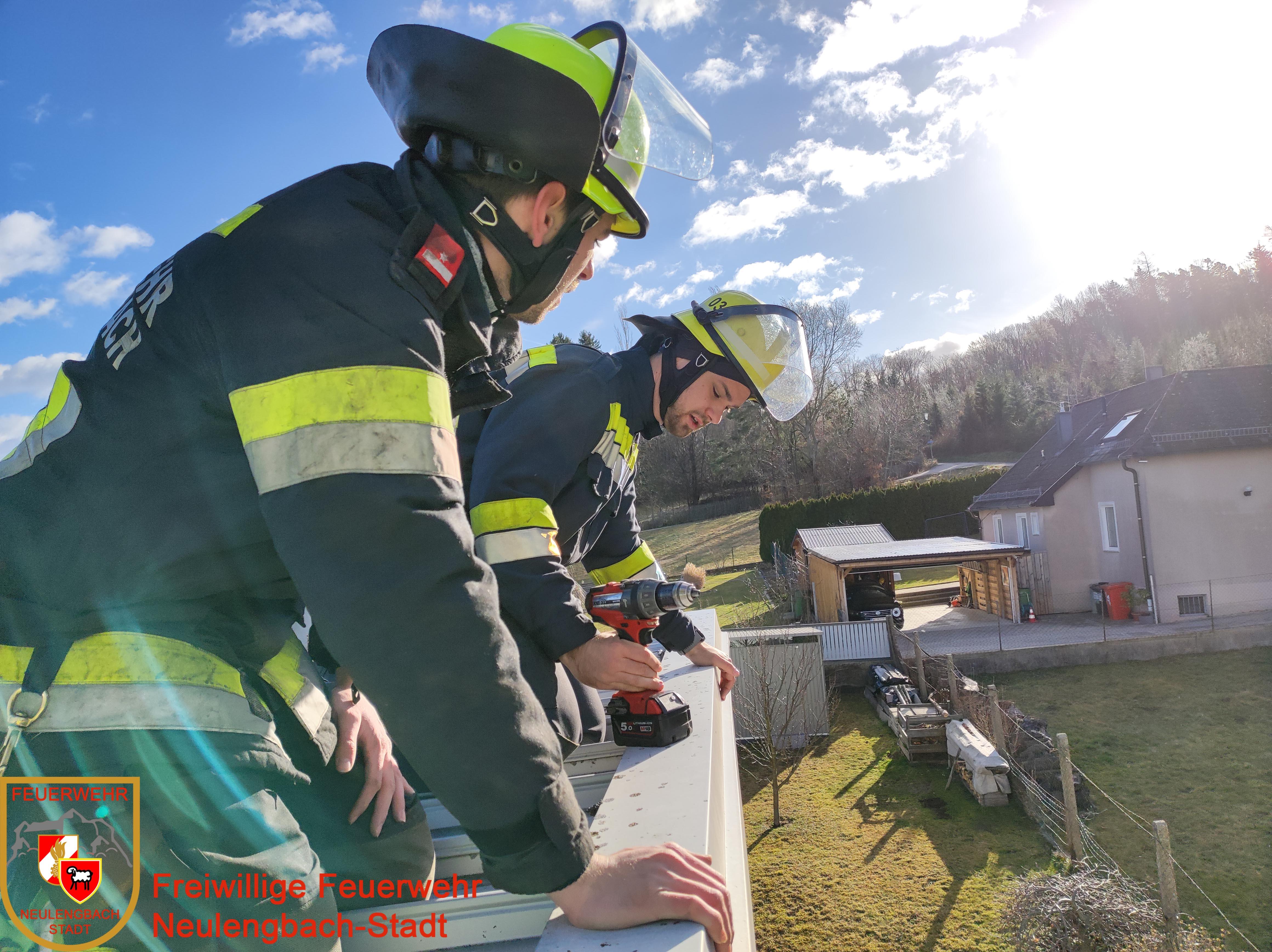 Am 19.2.2022 wurde die Freiwillige Feuerwehr Neulengbach-Stadt um 8:59 Uhr aufgrund des ,,Sturmtiefs Zeynep,, zu einem Sturmschaden alarmiert. Bei einem Haus drohte sich ein Blech Winkel zu lösen. Dieser wurde mit Schrauben und Beilagscheiben wieder fixiert.