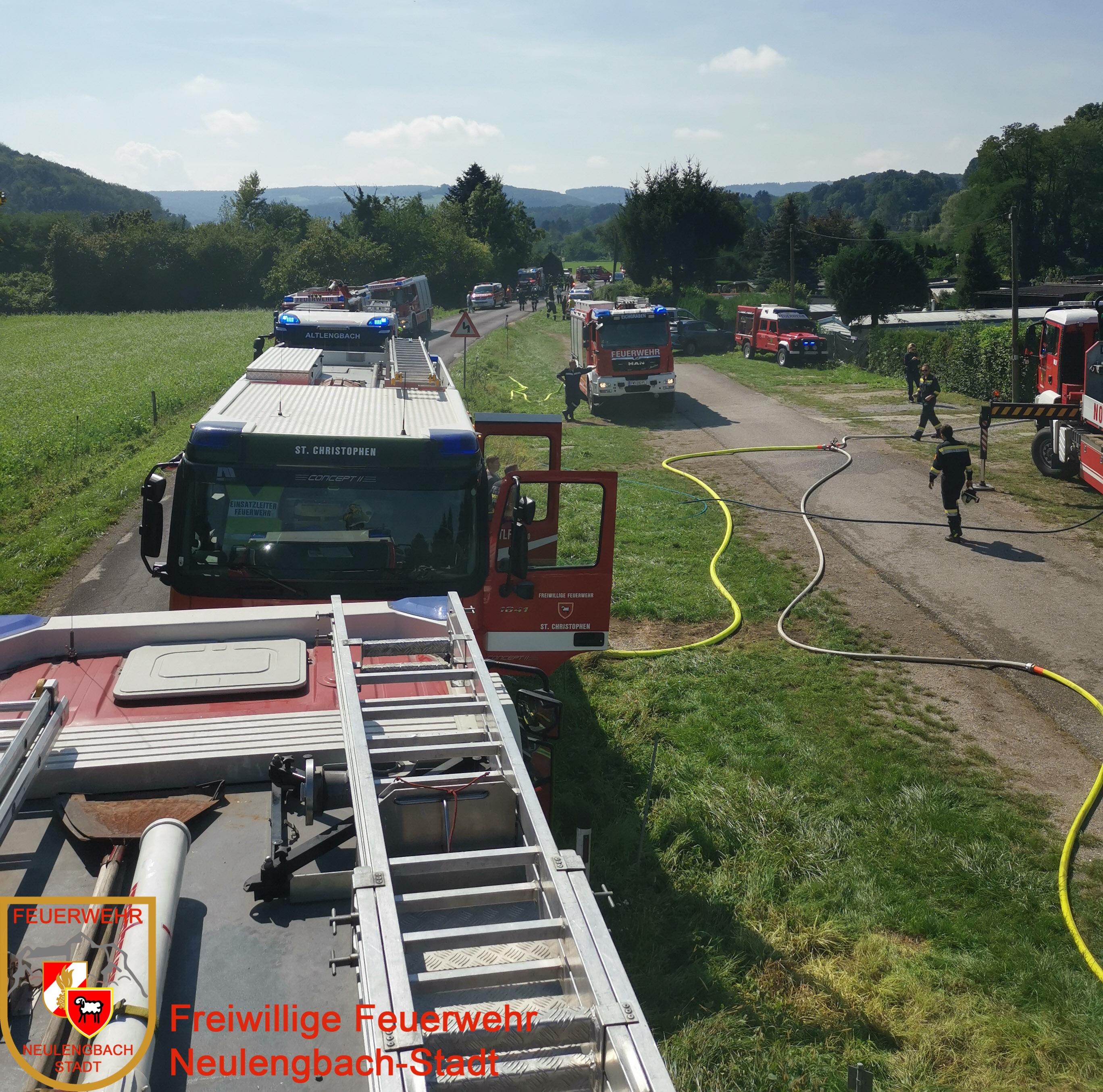 Beim Eintreffen am Einsatzort in Unterthurm stand auf einem Campingplatz eine größere Wohn-Gartenhütte in Vollbrand. Da es sich hier um das Einsatzgebiet der Freiwilligen Feuerwehr Altlengbach handelte, wurde unter der Einsatzleitung von der Feuerwehr Altlengbach, gemeinsam mit den Feuerwehren Brand-Laaben, Eichgraben, Maria-Anzbach, Neustift-Innermanzing, St.Christophen und Unter-Oberndorf, rasch mit der Brandbekämpfung und dem Schützen der umliegenden Objekte begonnen, um ein Ausbreiten des Brandes zu verhindern. Zusätzlich wurde eine Zubringleitung aufgebaut und ein Pendelverkehr eingerichtet, so konnte der Brand rasch gelöscht werden.
