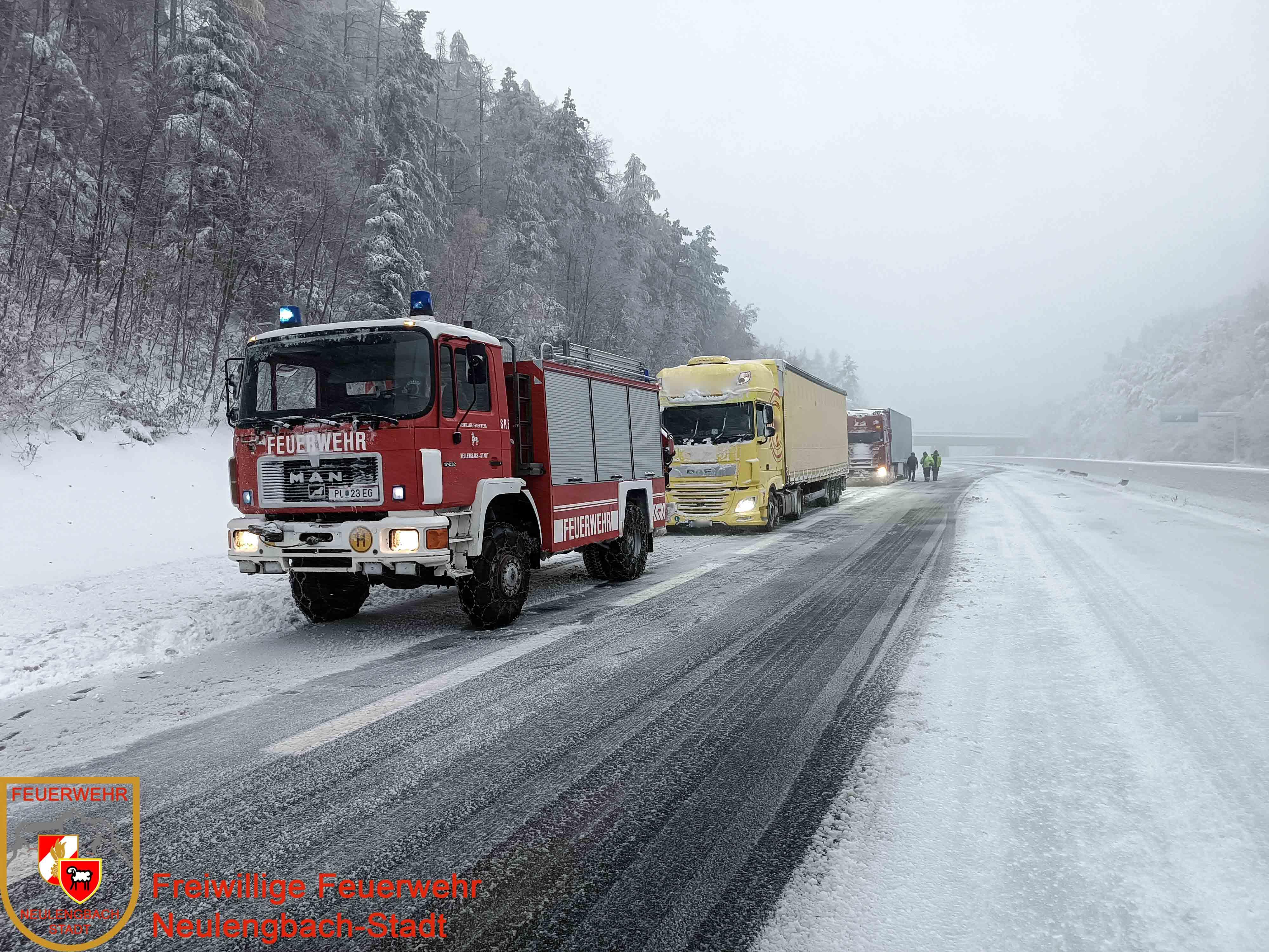 Um 12:13 Uhr wurde die Freiwillige Feuerwehr Neulengbach-Stadt von der Bereichsalarmzentrale St. Pölten mit der Meldung „T1 Bergung-LKW mehrere hängengebliebene LKWs“ zum Einsatz alarmiert.