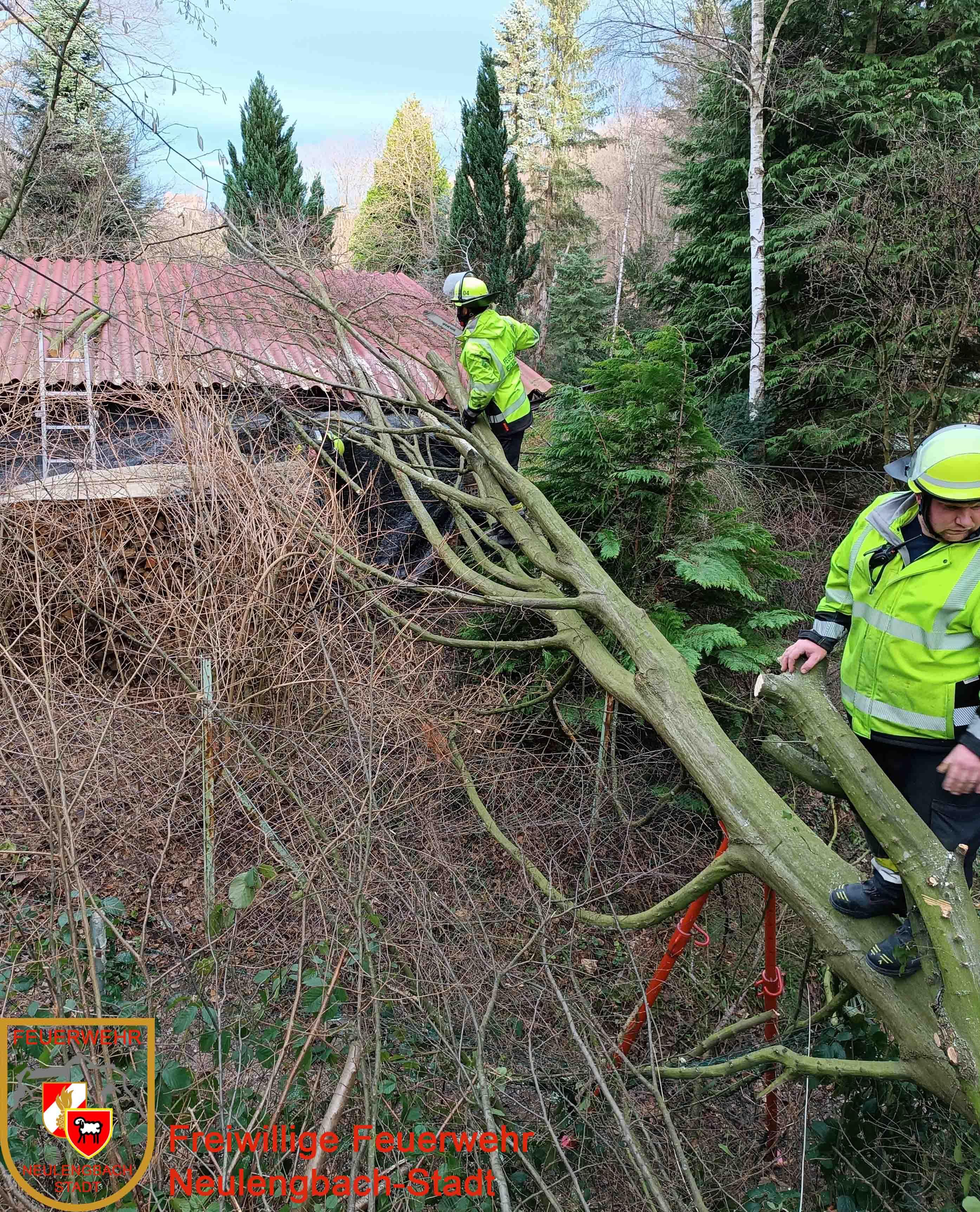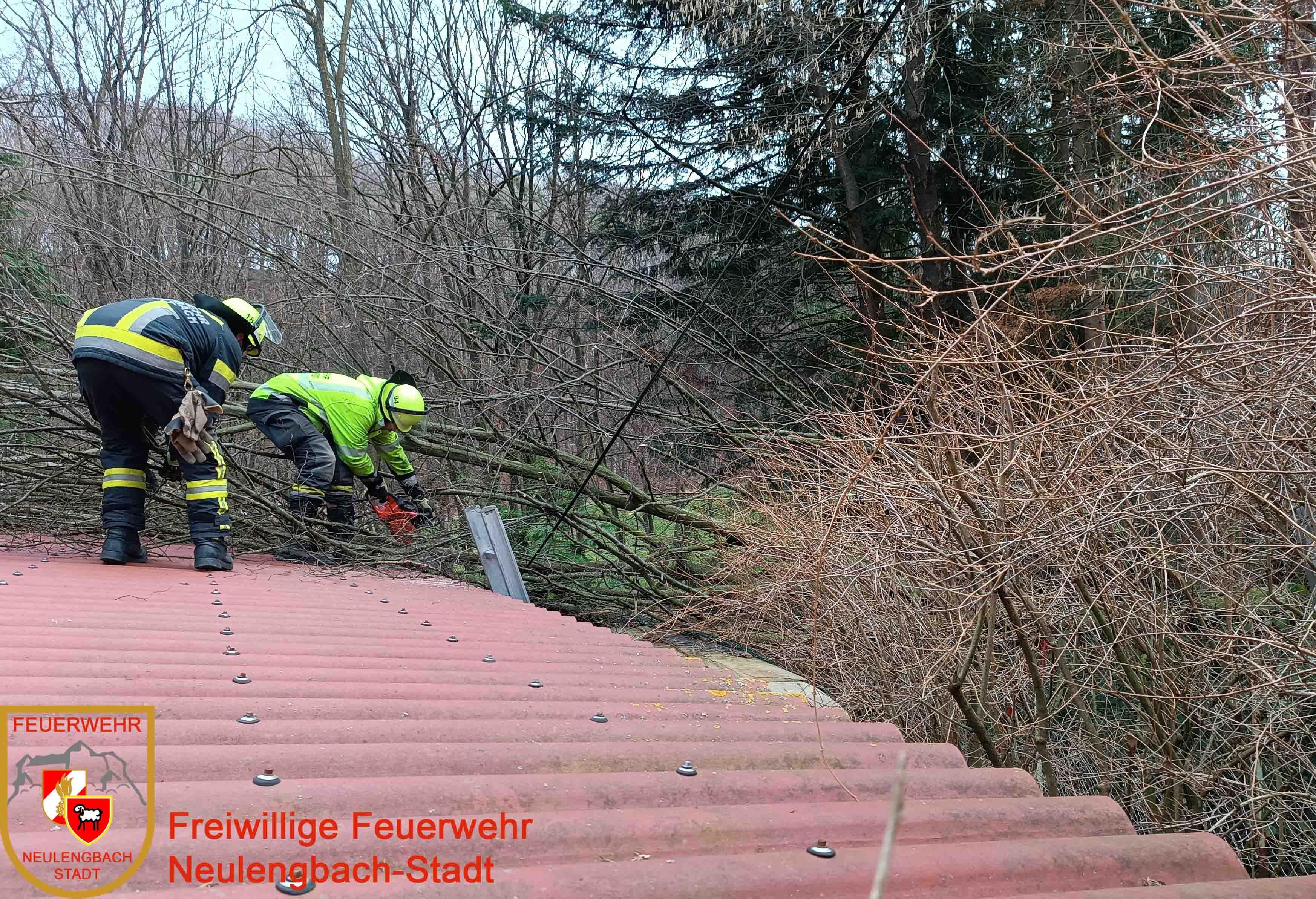 Am Christtag wurde um 13:01 Uhr die Freiwillige Feuerwehr Neulengbach-Stadt zu einem Sturmschaden mit dem Alarmtext: Baum auf Straße, alarmiert. Nach dem Eintreffen mit dem Schwerrüstfahrzeug konnte auf der Straße kein Baum festgestellt werden. So wurde über die Bereichsalarmzentrale nach weiteren Einsatzdaten gefragt, diese wies uns darauf hin, dass die Polizei bereits vor Ort war. Nach telefonischer Absprache mit dieser konnte der Einsatzort auf dem Wanderweg der von dieser Straße weiterführt gefunden werden. Ein Baum stürzte über einen Wanderweg und auf das Carport am Nachbargrundstück. Es wurde noch Mannschaft die auf Bereitschaft im Feuerwehrhaus war mit dem Vorausrüstfahrzeug nachgefordert. Als Erst Maßnahme wurde der Baum mittels zweier Pölz Rohre gesichert um weiteren Schaden zu verhindern. Danach wurde Mittels mehrere Kettensägen und ,,Manpower“ der Baum zerkleinert und gesichert abgelegt. Nach dem Einrücken und der Gerätewartung konnten die Mitglieder wieder zu ihren Familien heimkehren und das Weihnachtsfest mit diesen Genießen.
