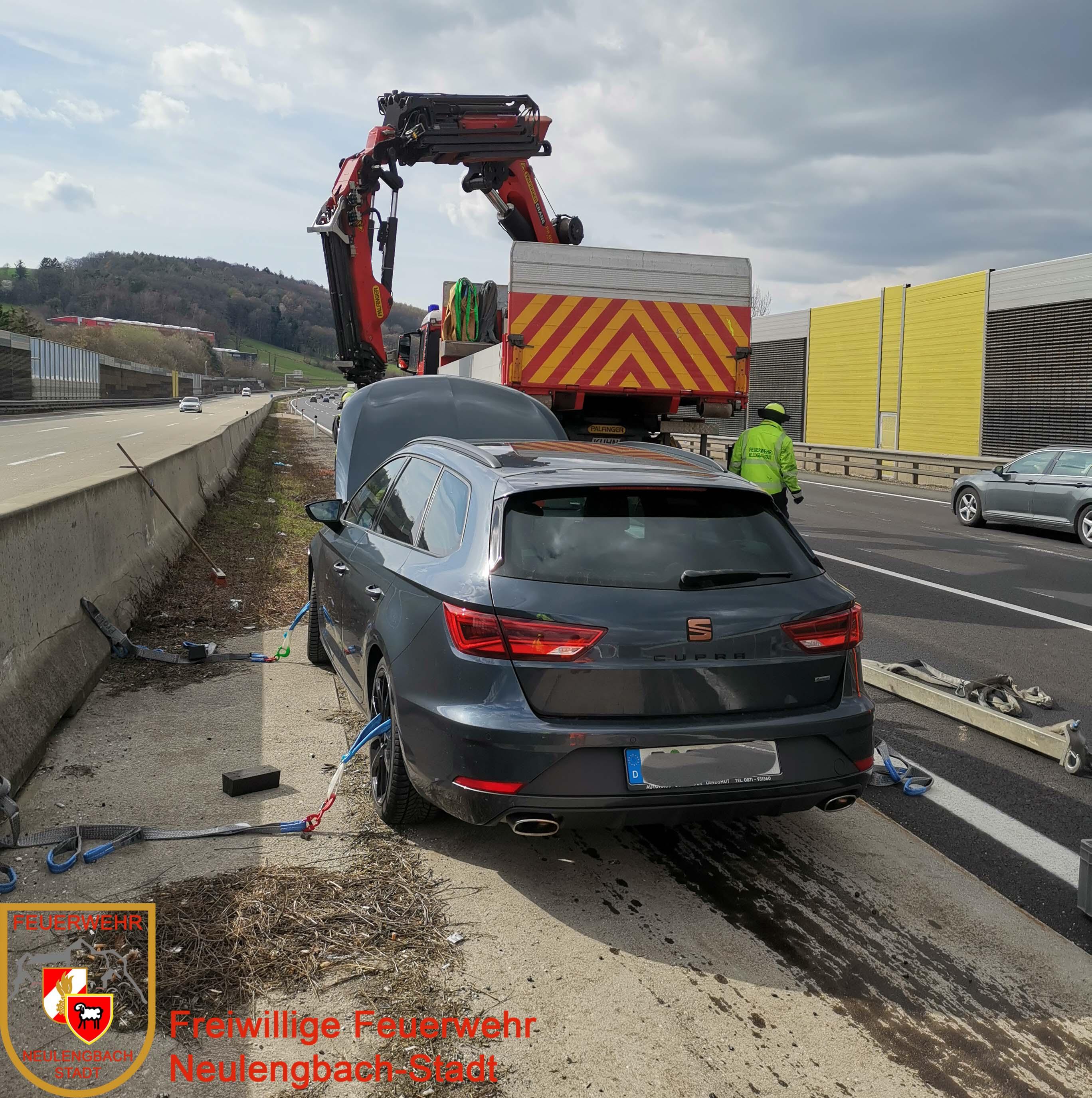 Aufgrund eines Motorschadens kam ein PKW am rechten Fahrbahnrand des 3. Fahrstreifen zu Stehen und verlor Motoröl. Beim Eintreffen des Wechselladefahrzeugs wurde als Erstmaßnahme Ölbindemittel aufgebracht und das Versorgungsfahrzeug mit weiterem Bindemittel nachgefordert. Der PKW wurde mittels Kran auf das Bergeplateau des WLF verladen, abtransportiert und danach gesichert abgestellt. Die Mannschaft des nachgeforderten VF brachte weiteres Ölbindemittel auf, die Reinigung führte die ASFINAG durch.