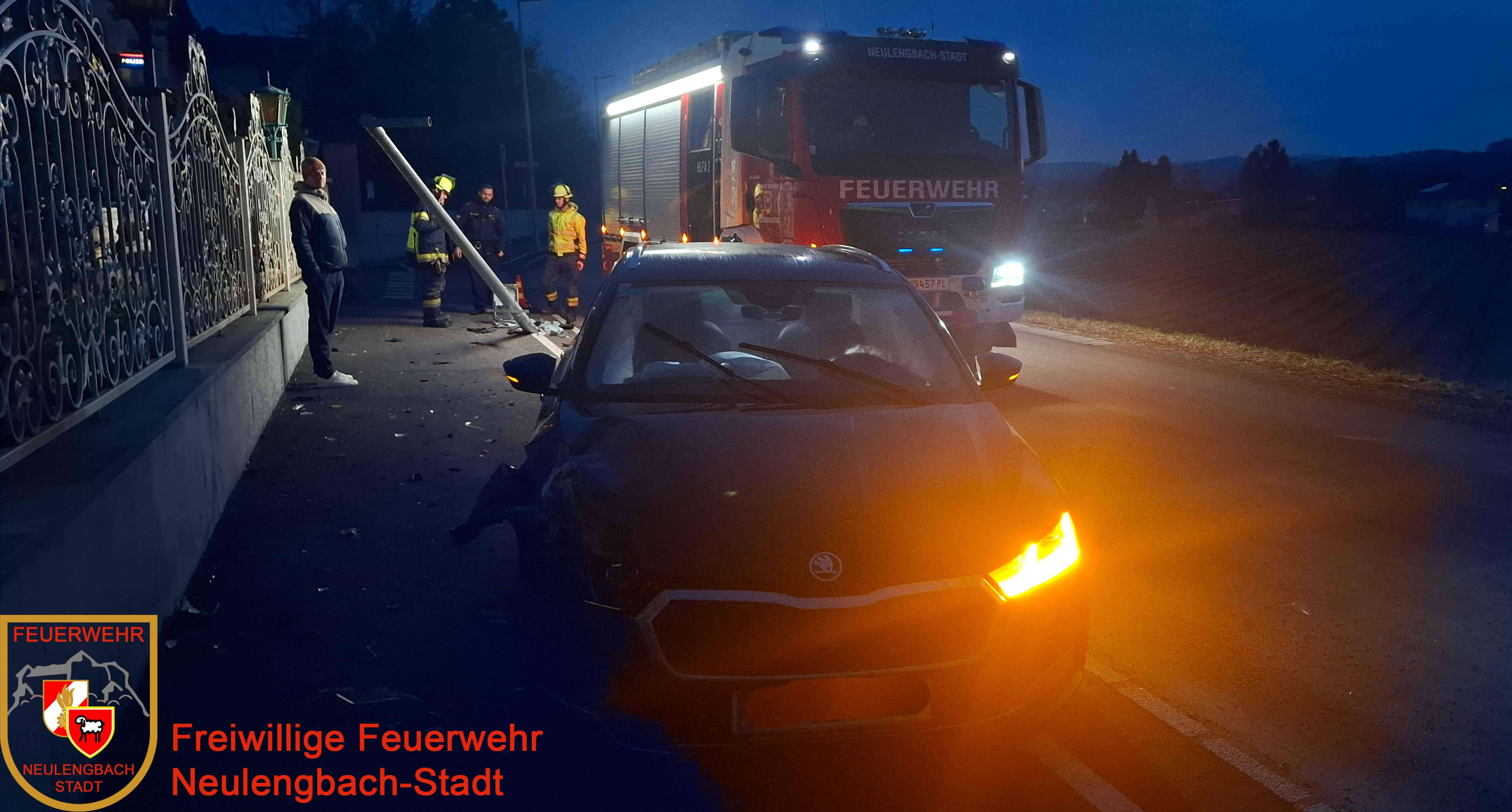Am 04.12.2025 wurde die Freiwillige Feuerwehr Neulengbach-Stadt zu einem Einsatz mit dem Meldebild „T1-Stromgefahr“ alarmiert. Nach kurzer Lageerkundung wurde durch den Einsatzleiter festgestellt, dass ein PKW von der Fahrbahn abgekommen war und eine Straßenlaterne umgerissen hatte. Da der Laternenmast in den Bereich des Gehsteigst ragte, wurde dieser von der Feuerwehr entfernt und das Auto gesichert abgestellt.