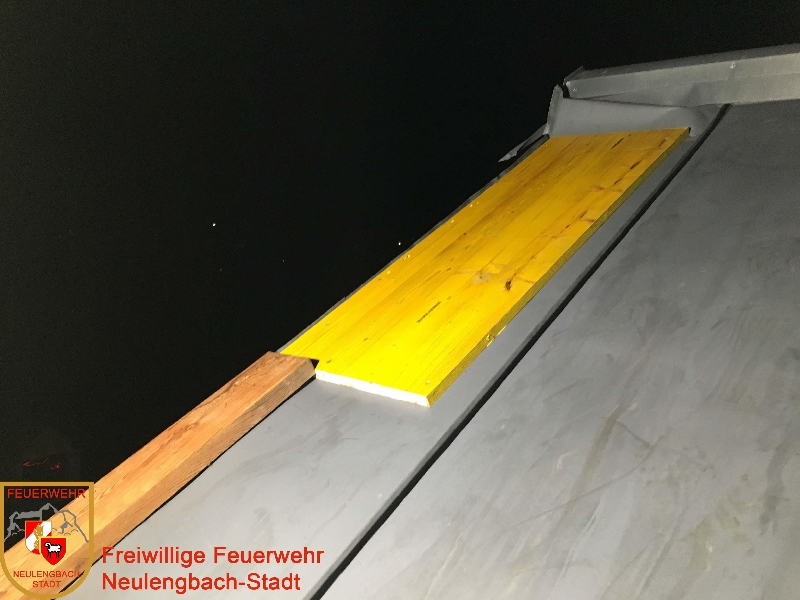 Am 03.01.2018 wurde die Freiwillige Feuerwehr Neulengbach-Stadt um 16:56 Uhr mit der Meldung "Sturmschaden" alarmiert. Bei einem Einfamilienhaus in Haag hatten sich aufgrund der hohen Windgeschwindigkeiten an diesem Abend Teile des Blechdaches gelöst und drohten das Dach noch schwerer zu beschädigen. Die Feuerwehrkameraden verschafften sich mittels mehrerer Steckleiterteile Zugang zum Balkon und weiter zum Dach, um die losen Blechteile provisorisch zu befestigen, um ein Abreißen bzw. weitere Beschädigungen zu verhindern.
