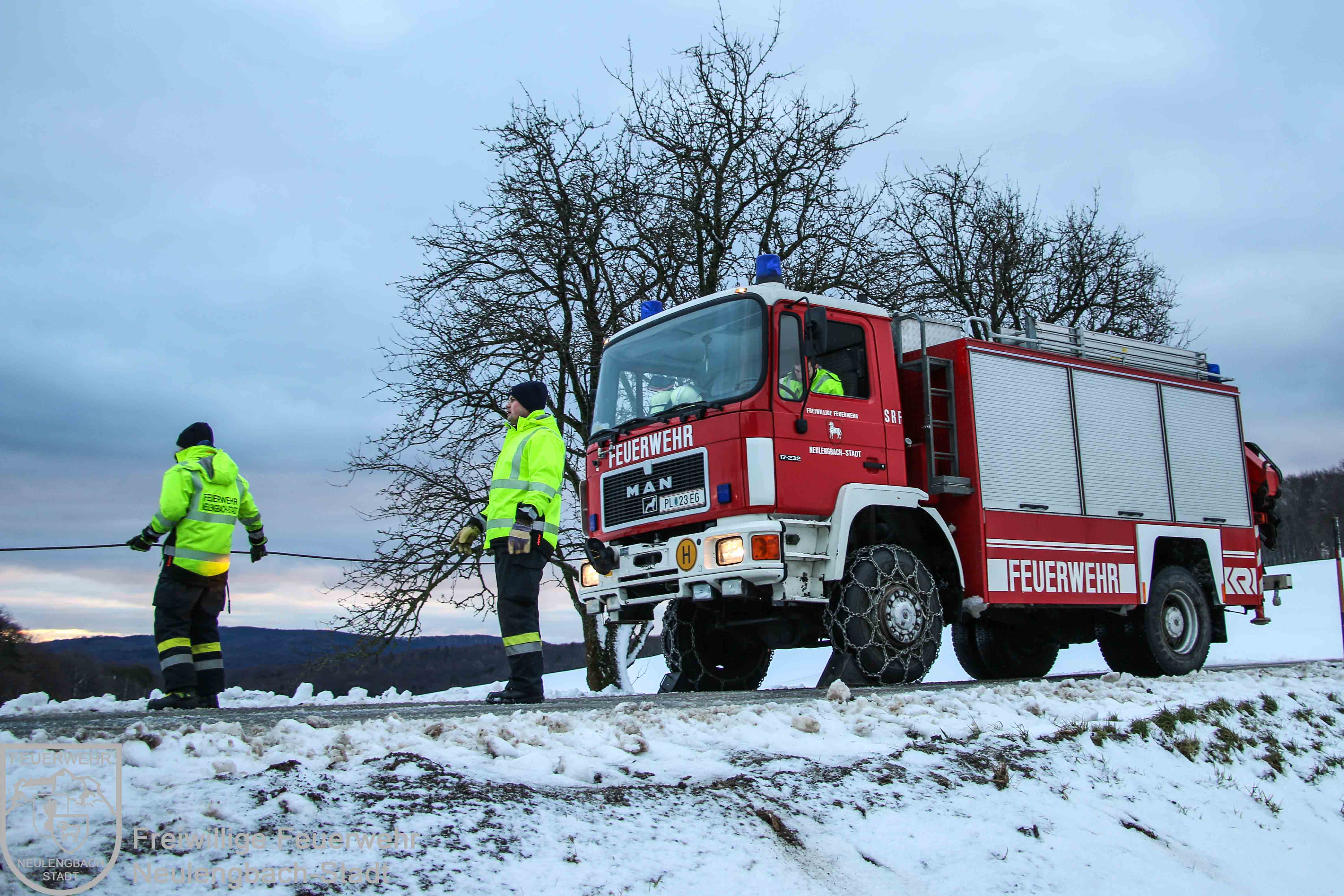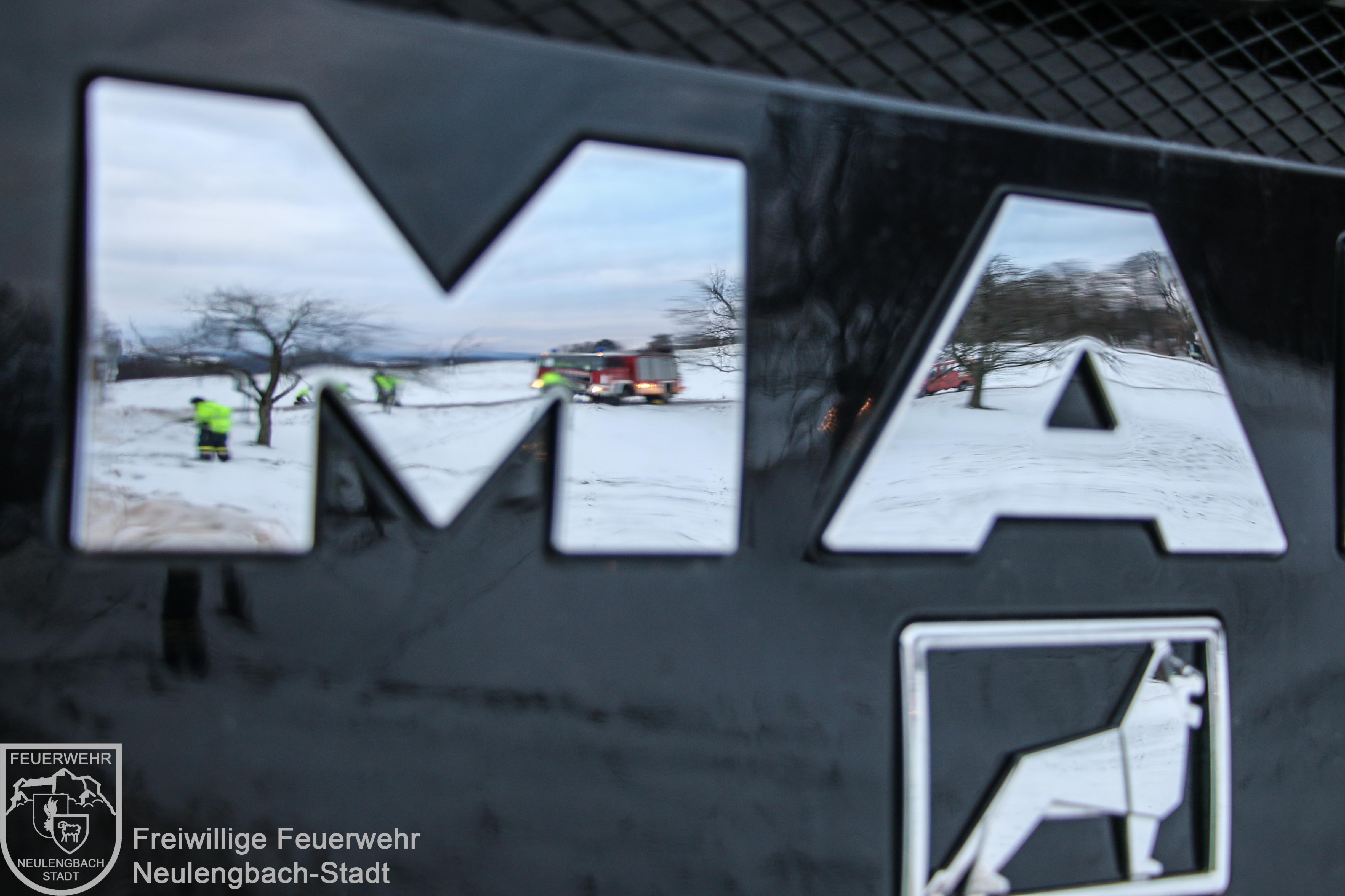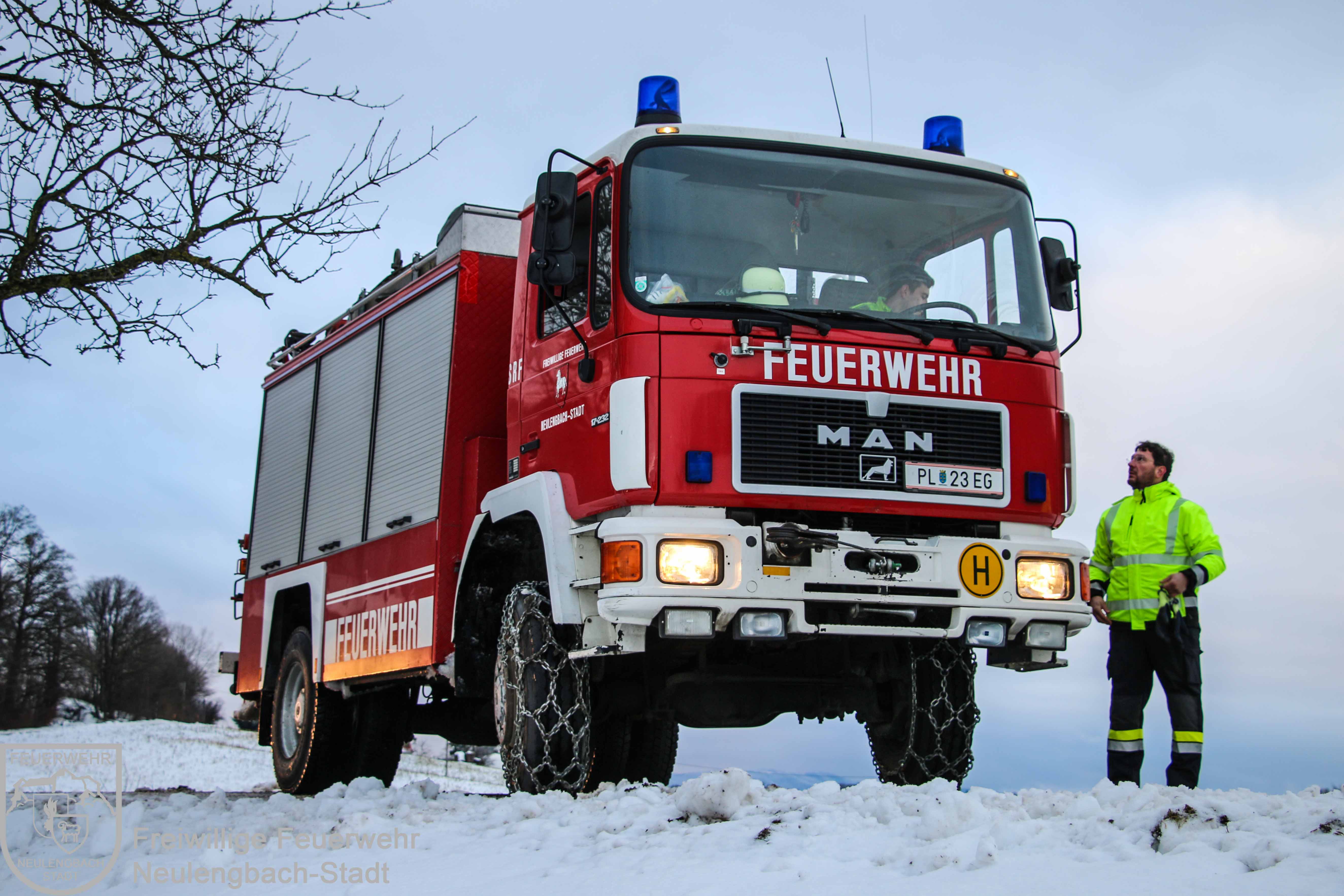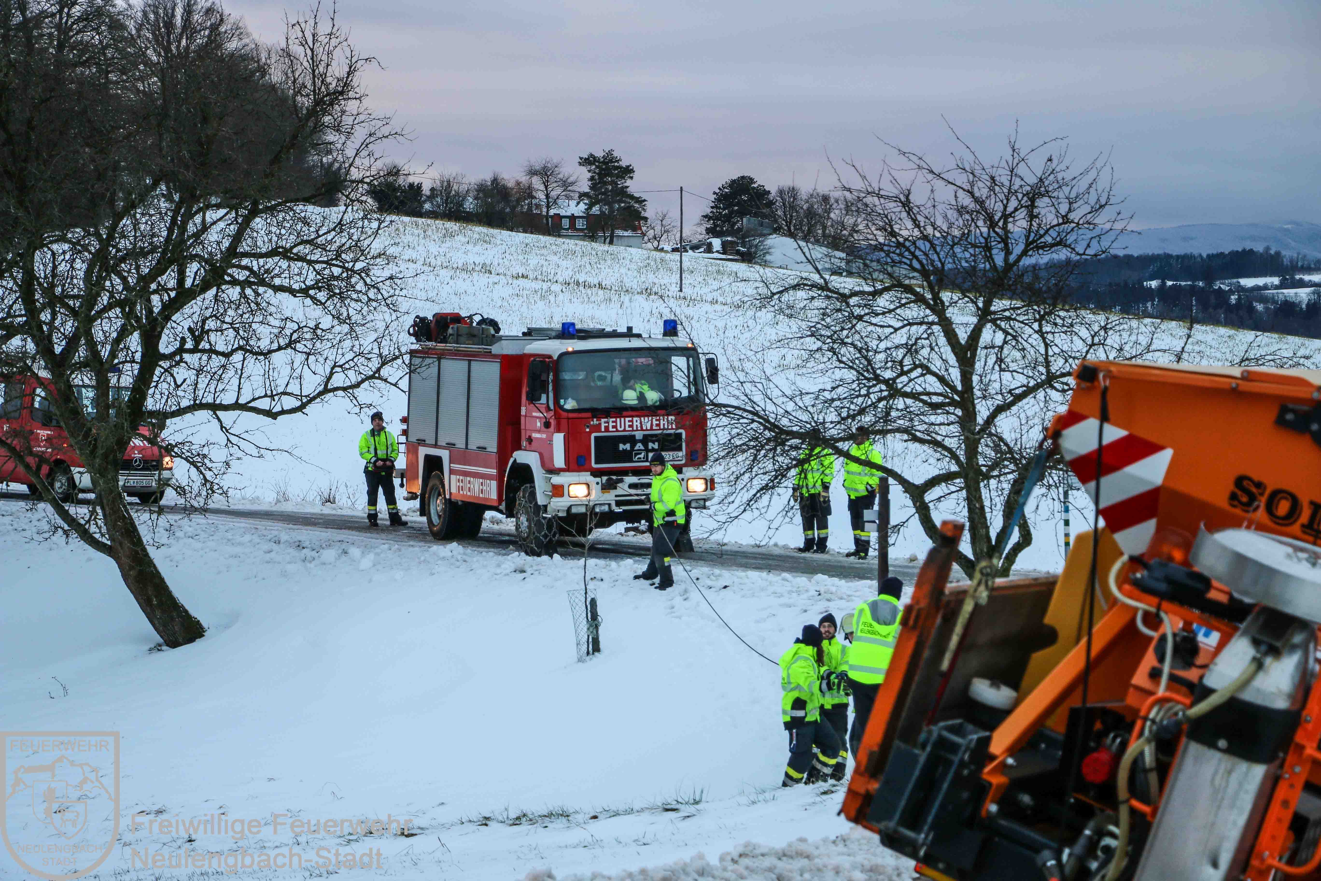 Am Dreikönigsfeiertag wurde um 07:31 Uhr die Freiwillige Feuerwehr Neulengbach-Stadt zur Unterstützung der Freiwilligen Feuerwehr Dornberg-Geigelberg alarmiert. Im Kreuzungsbereich Dornberger Straße / Wintenstraße war ein Räumfahrzeug des Winterdienstes in den Straßengraben geraten und dort im aufgeweichten Erdreich stecken geblieben. Mit der Seilwinde des Schweren Rüstfahrzeugs und einer beweglichen Scherrolle konnte der Schneepflug relativ rasch wieder aus seiner mißlichen Lage befreit werden, dabei wurde mit dem Kran des Wechselladefahrzeugs der Winterdienst-LKW am Heck gegen eine mögliche Kippgefahr gesichert.