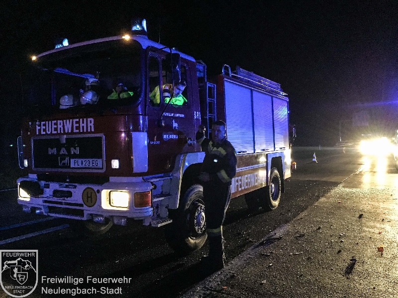 Am 8. Mai wurde die Freiwillige Feuerwehr Neulengbach-Stadt kurz vor Mitternacht mit der Meldung "Verkehrsunfall mit eingeklemmter Person" alarmiert. Auf der Westautobahn Höhe Rastplatz Kirchstetten (Richtungsfahrbahn Salzburg) hatte sich ein schwerer LKW-Unfall ereignet, bei dem zwei Sattelkraftfahrzeuge kollidiert waren und die beiden Insassen in einer der Fahrerkabinen eingeschlossen wurden. Während von der ebenfalls alarmierten Feuerwehr Kirchstetten die Befreiung der eingeschlossenen Personen durchgeführt wurde, bauten die Einsatzkräfte der Feuerwehr Neulengbach-Stadt Brandschutz sowie Beleuchtung auf, bereiteten als Reserve einen weiteren hydraulischen Rettungssatz vor und banden erhebliche Mengen an ausgetretenen Betriebsmitteln mit Ölbindemittel.