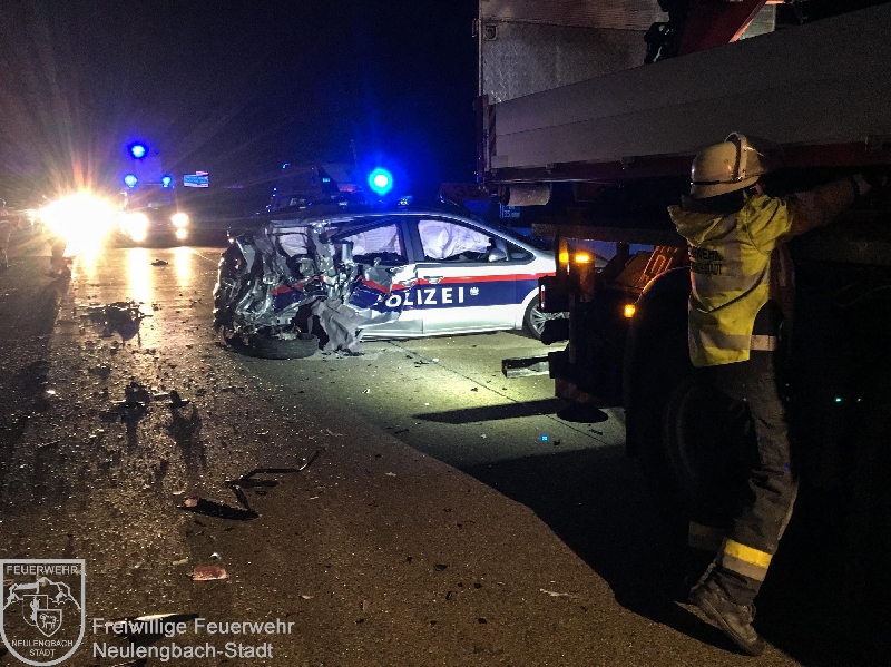 Bei der Ausfahrt Altlengbach wurde der Verkehr von der durch den Unfall bei Kirchstetten gesperrten Westautobahn abgeleitet, ein Streifenwagen der Autobahnpolizei sicherte diese Ableitung weithin gut sichtbar ab. Trotzdem prallte ein Kleinbus aus bislang ungeklärter Ursache gegen das Polizeiauto und kam erst mehrere hundert Meter danach zu stehen.