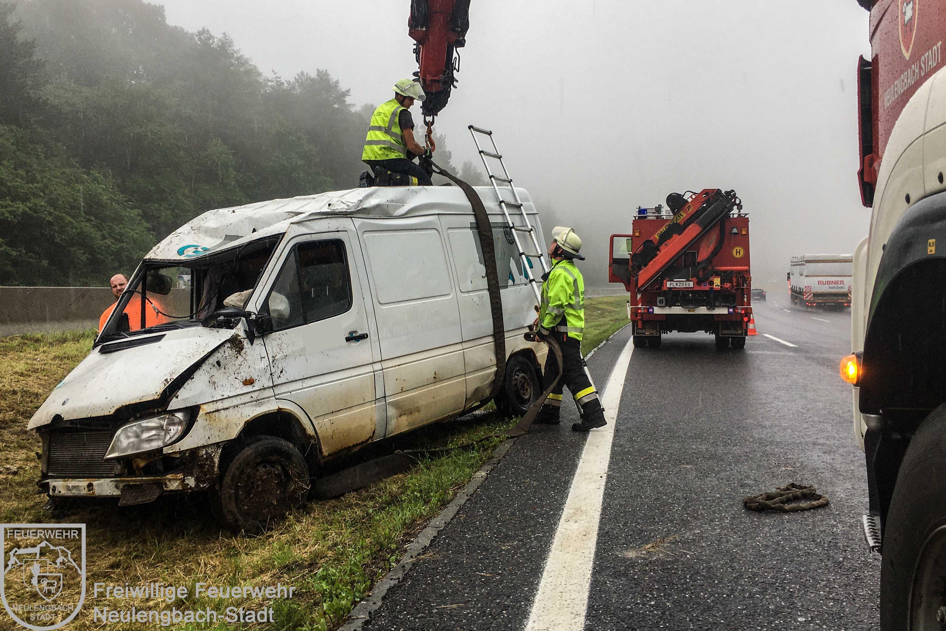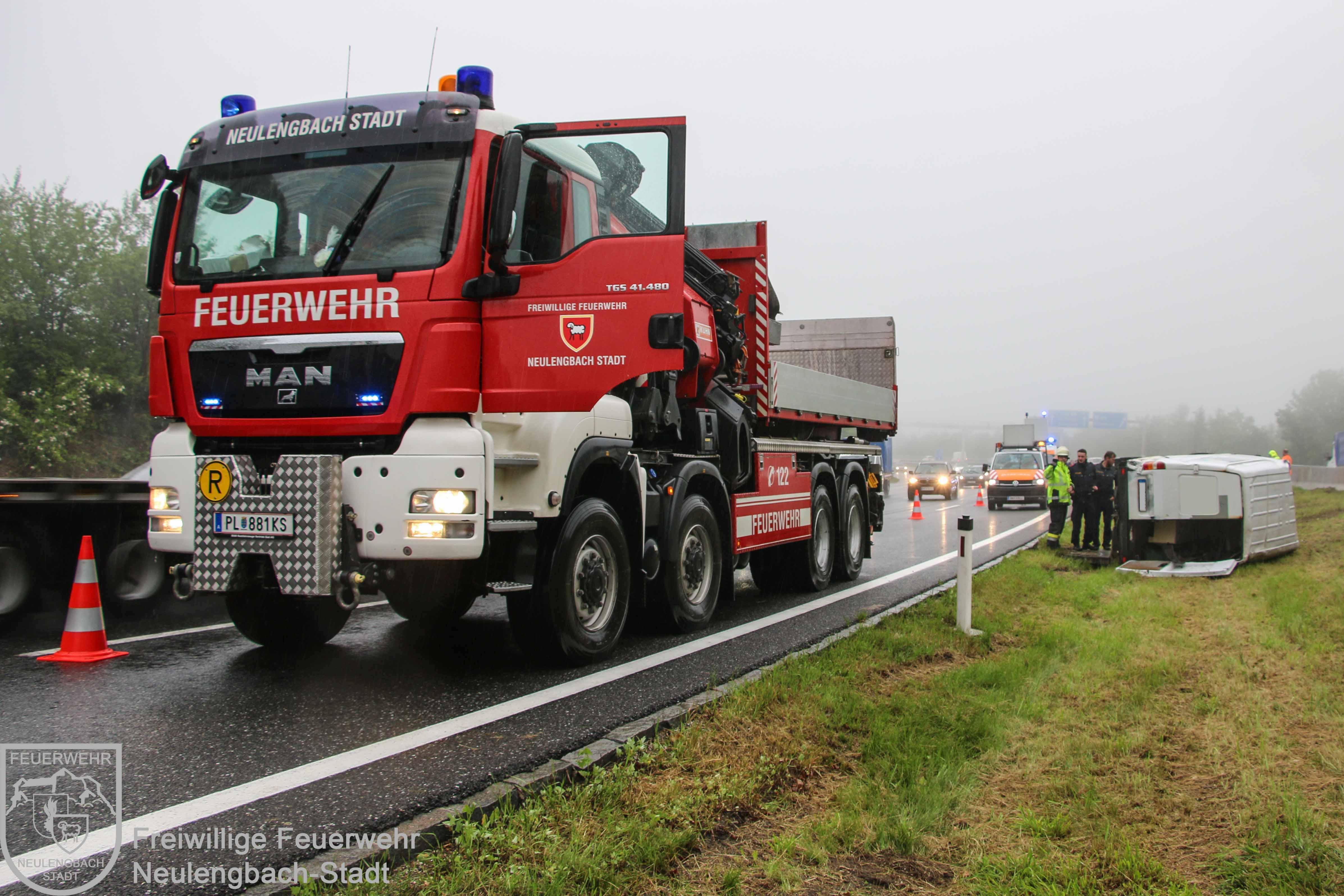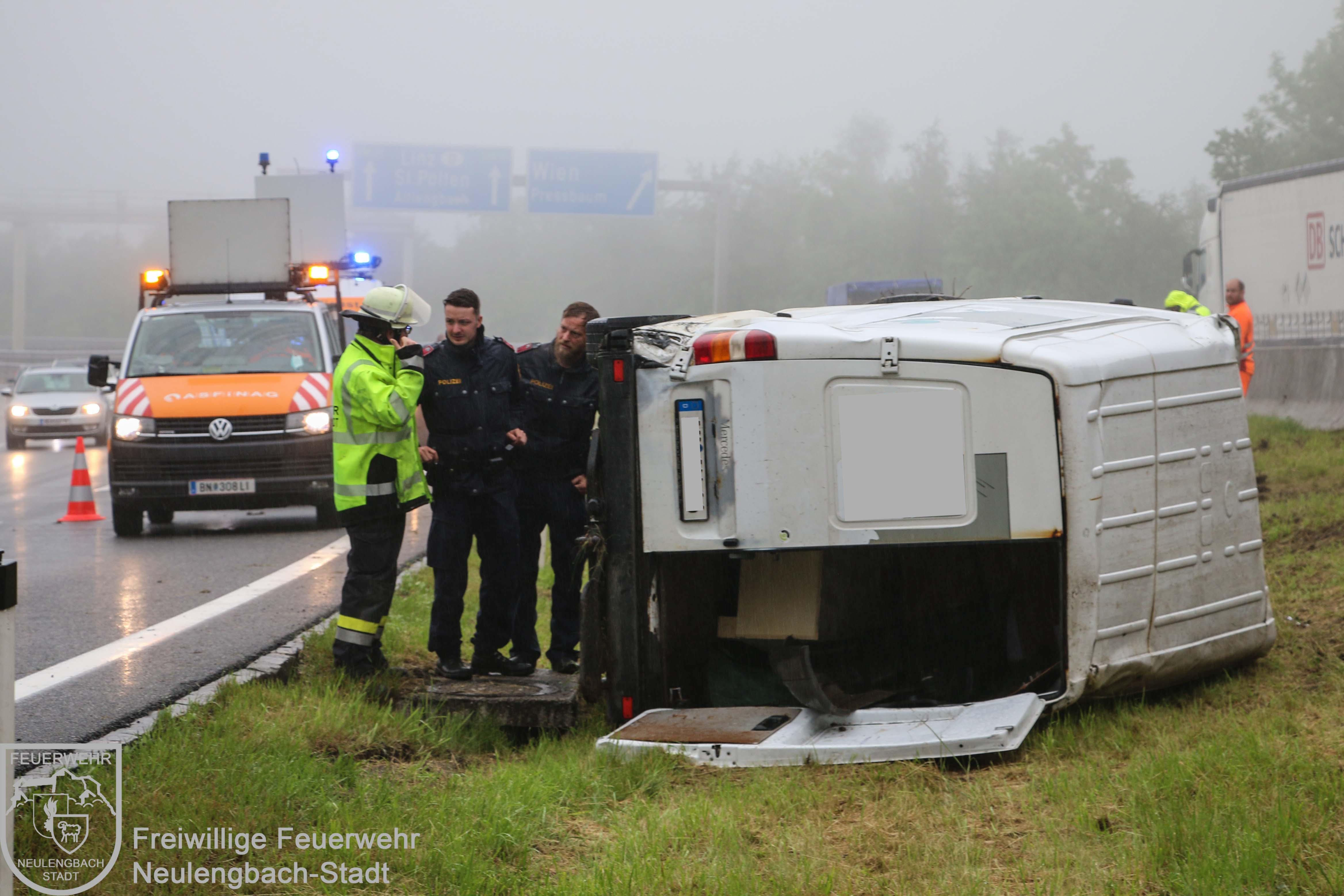 Am 10. Juni wurde die Freiwillige Feuerwehr Neulengbach-Stadt um 10:46 Uhr zu einer Fahrzeugbergung auf der Autobahn alarmiert. Auf der Steigungsstrecke der Wiener Außenring Autobahn war zwischen dem Knoten Steinhäusl und der Ausfahrt Hochstraß ein Kastenwagen linksseitig von der Fahrbahn abgekommen und nach einem Anprall gegen die Betonleitelemente der Fahrbahntrennung seitlich am Grünstreifen zu liegen gekommen.
