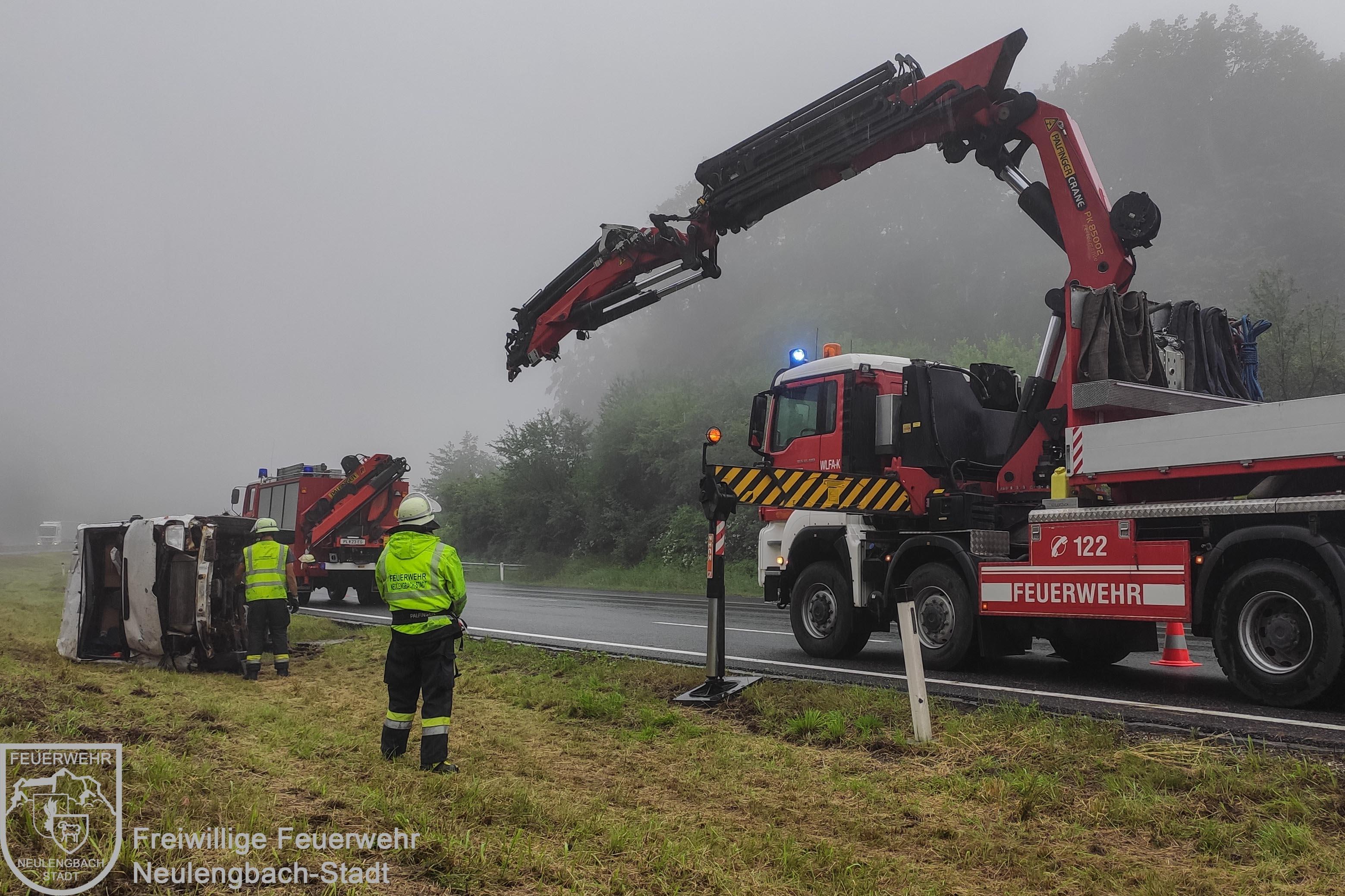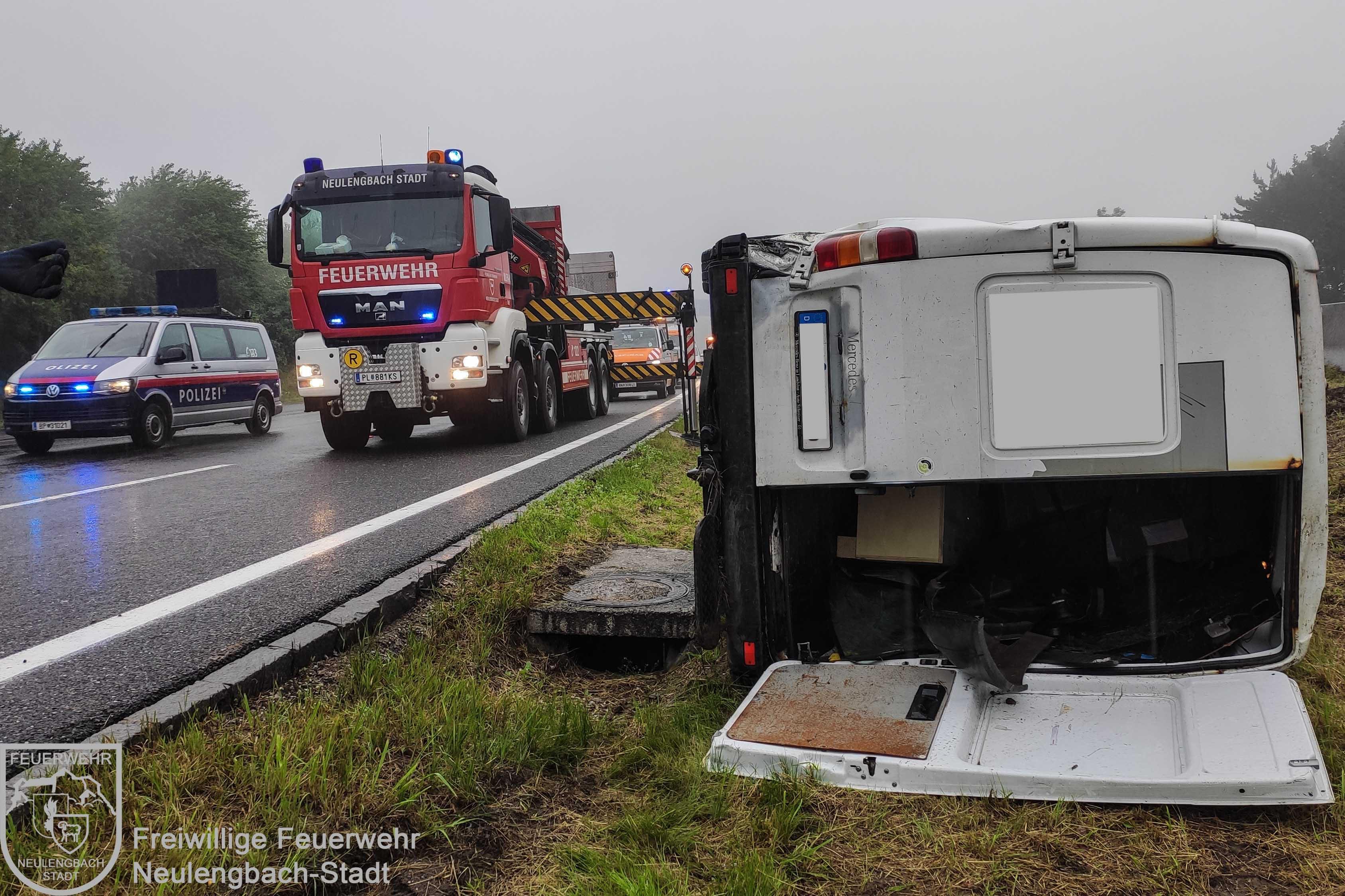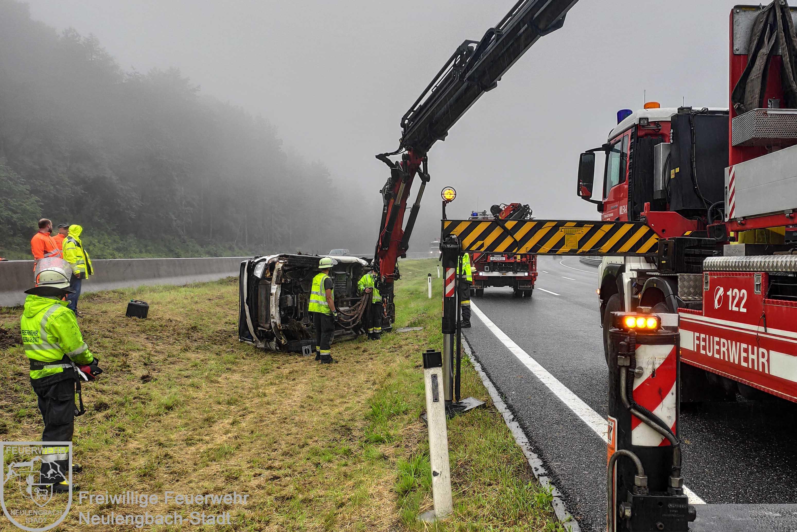 Am 10. Juni wurde die Freiwillige Feuerwehr Neulengbach-Stadt um 10:46 Uhr zu einer Fahrzeugbergung auf der Autobahn alarmiert. Auf der Steigungsstrecke der Wiener Außenring Autobahn war zwischen dem Knoten Steinhäusl und der Ausfahrt Hochstraß ein Kastenwagen linksseitig von der Fahrbahn abgekommen und nach einem Anprall gegen die Betonleitelemente der Fahrbahntrennung seitlich am Grünstreifen zu liegen gekommen.