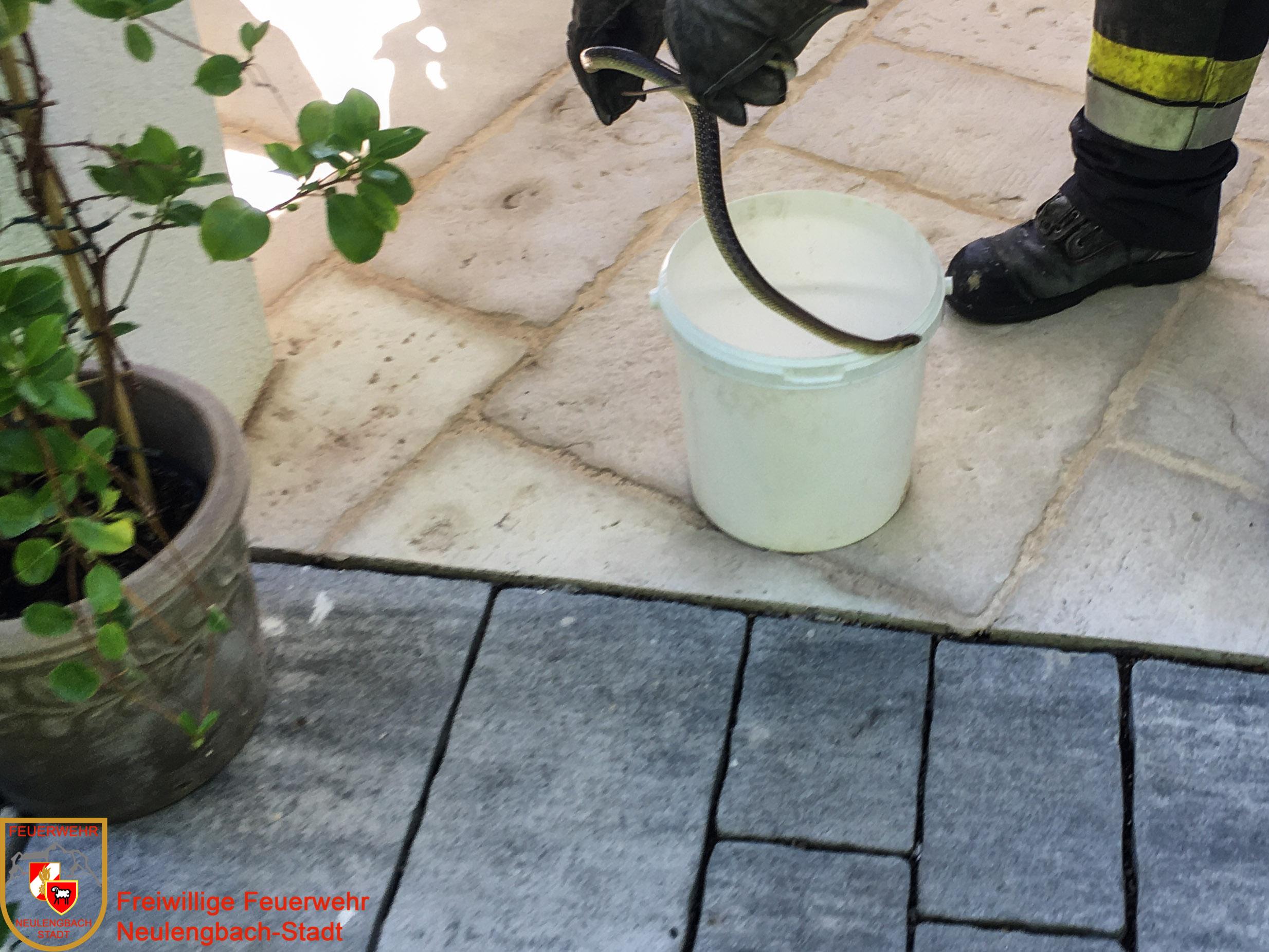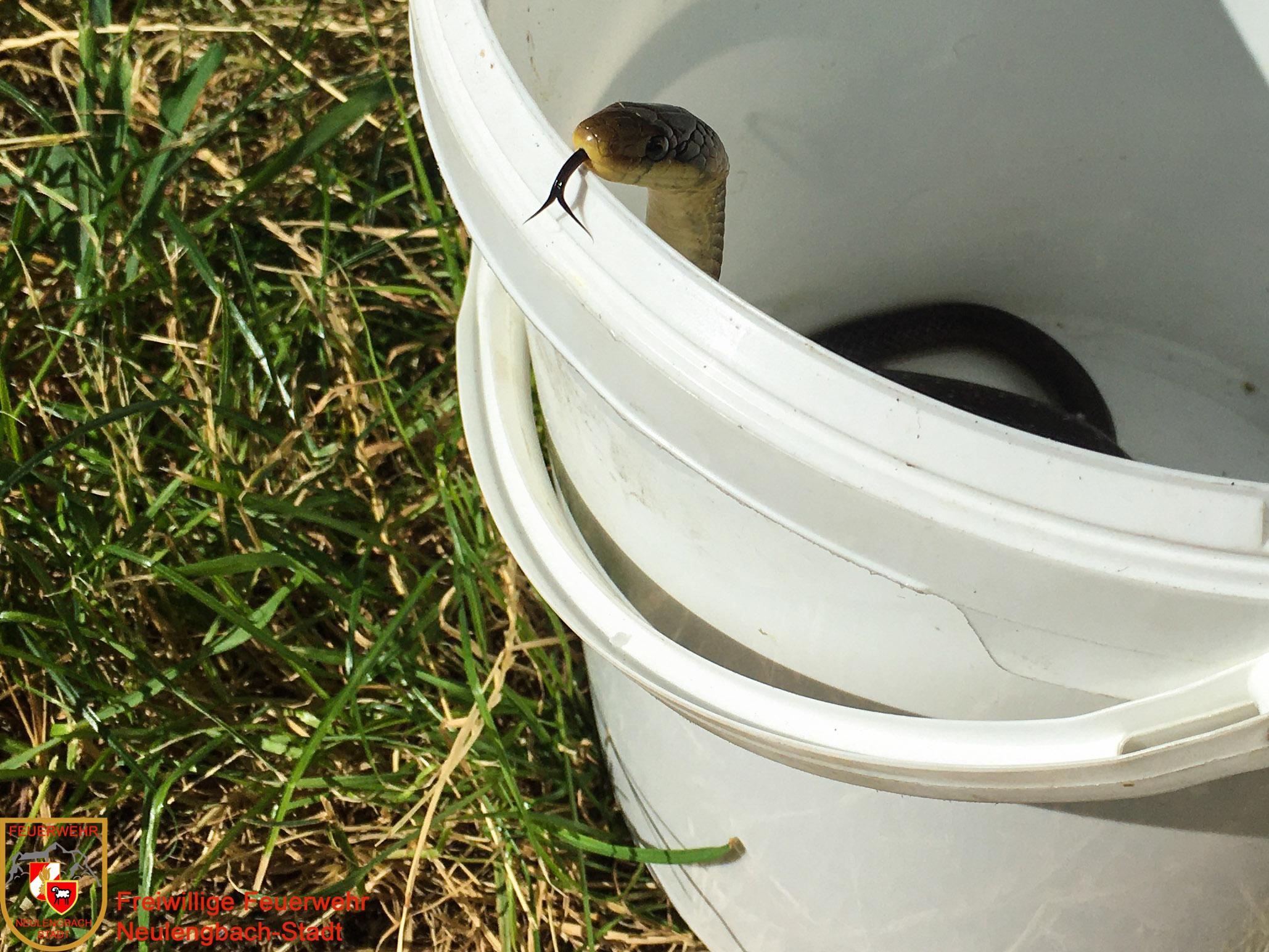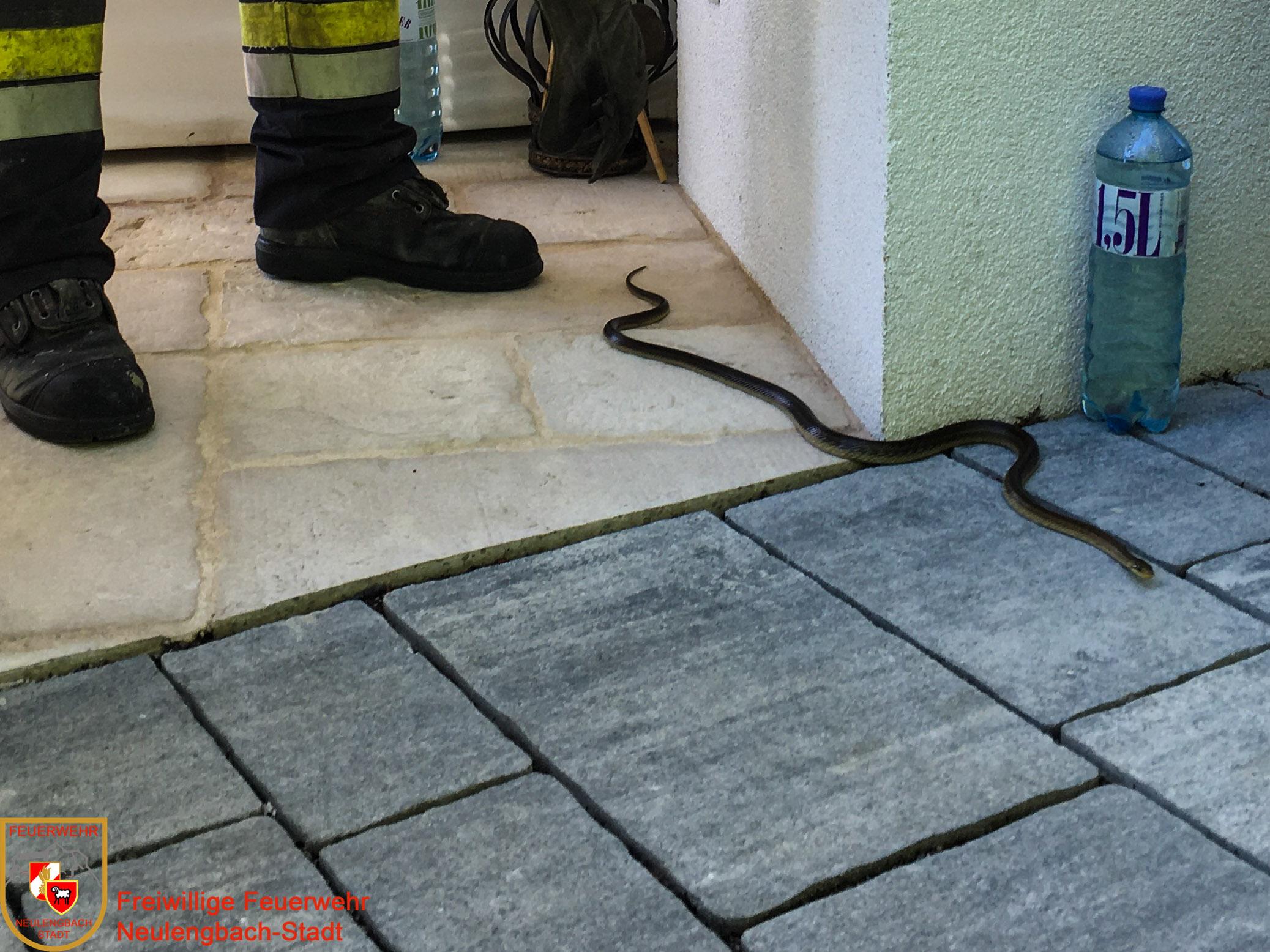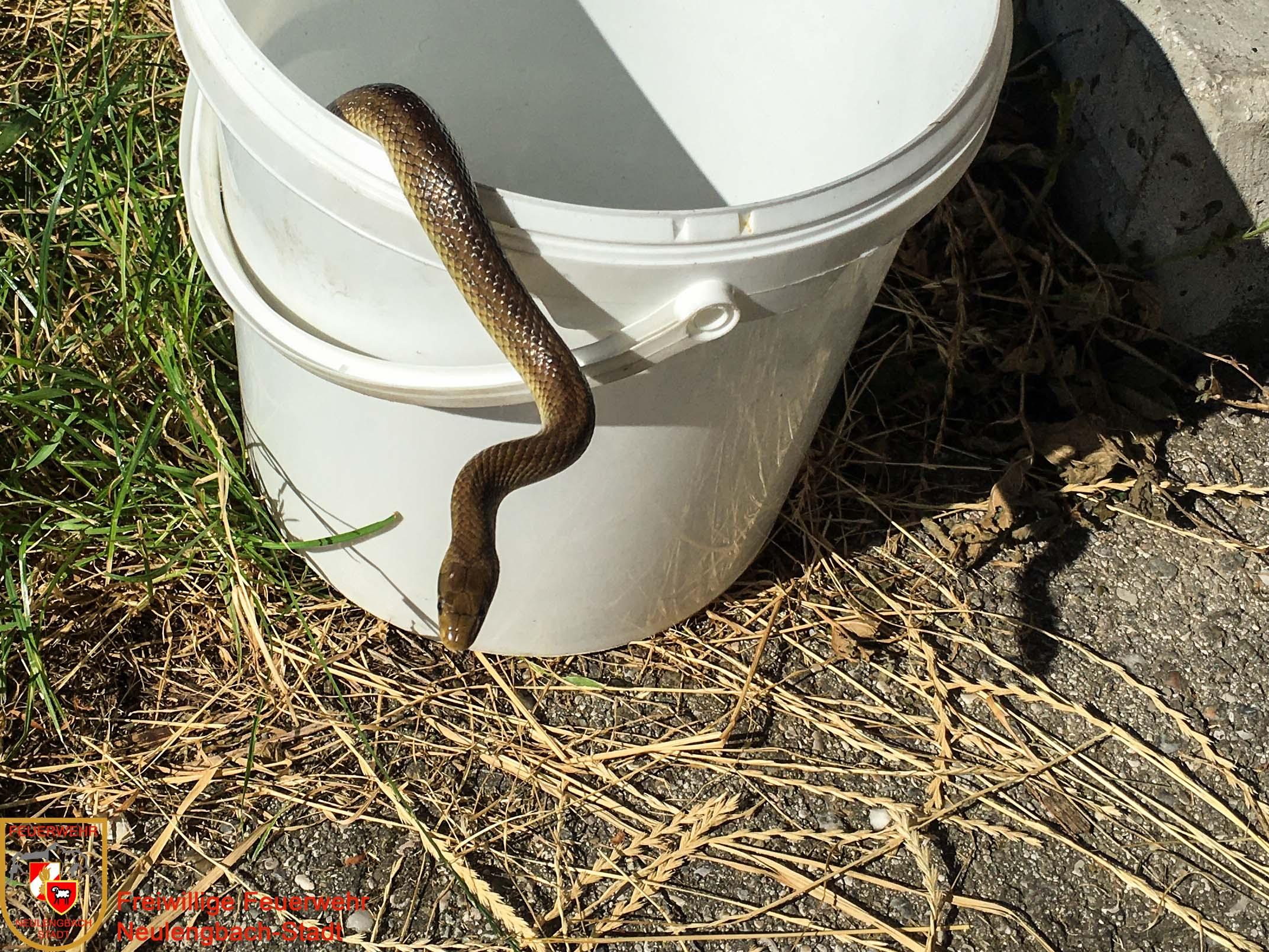 Der zweite Einsatz am 5. Juli betraf eine Tierrettung. Am Sonntagnachmittag machte es sich eine Äskulapnatter auf der Terrasse eines Einfamilienhauses an der Höhenstraße gemütlich, was bei den Hausbewohnern verständlicherweise auf wenig Gegenliebe stieß. Unsere Einsatzkräfte konnten die Schlange rasch einfangen und in einem mit Luftlöchern versehenen Behältnis abtransportieren.