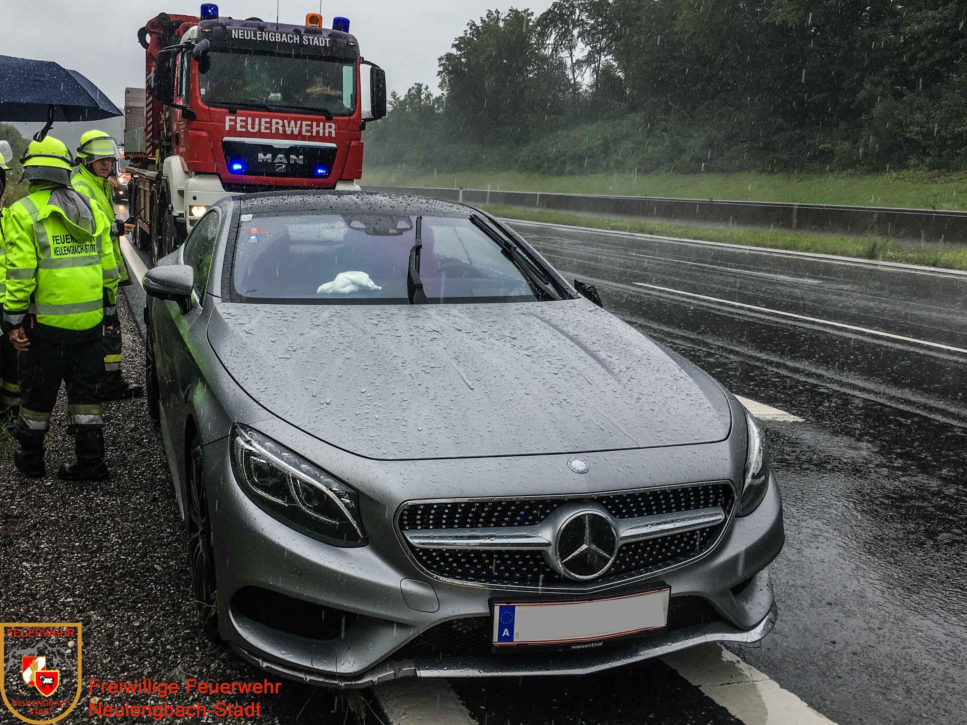 Am 3. August wurde die Freiwillige Feuerwehr Neulengbach-Stadt um 11:48 Uhr zu einer PKW-Bergung auf der Westautobahn alarmiert. Unmittelbar nach der Auffahrt St. Christophen war auf der regennassen Fahrbahn ein PKW ins Schleudern geraten und nach einem Dreher entgegen der Fahrtrichtung im Straßengraben zu stehen gekommen. Das nur marginal beschädigte Unfallauto wurde behutsam aus dem Graben geborgen und wieder in die passende Fahrtrichtung gedreht, sodaß eine Weiterfahrt bis zur Werkstätte aus eigener Kraft möglich war. Der Fahrzeuglenker blieb bei diesem Unfall glücklicherweise unverletzt.