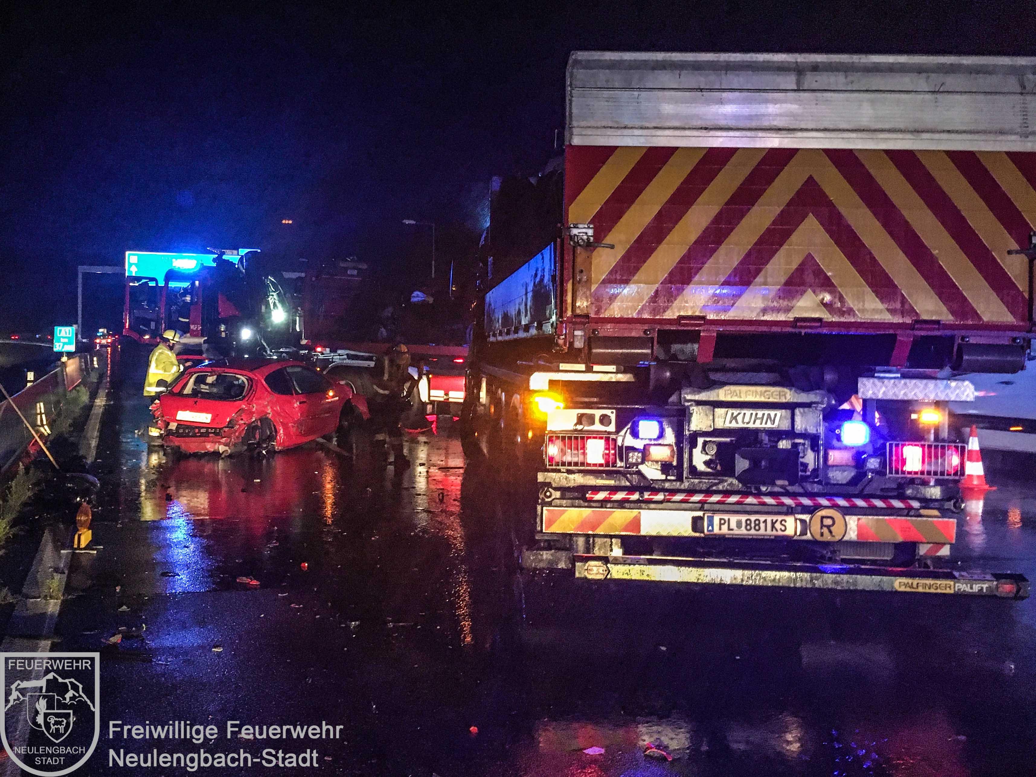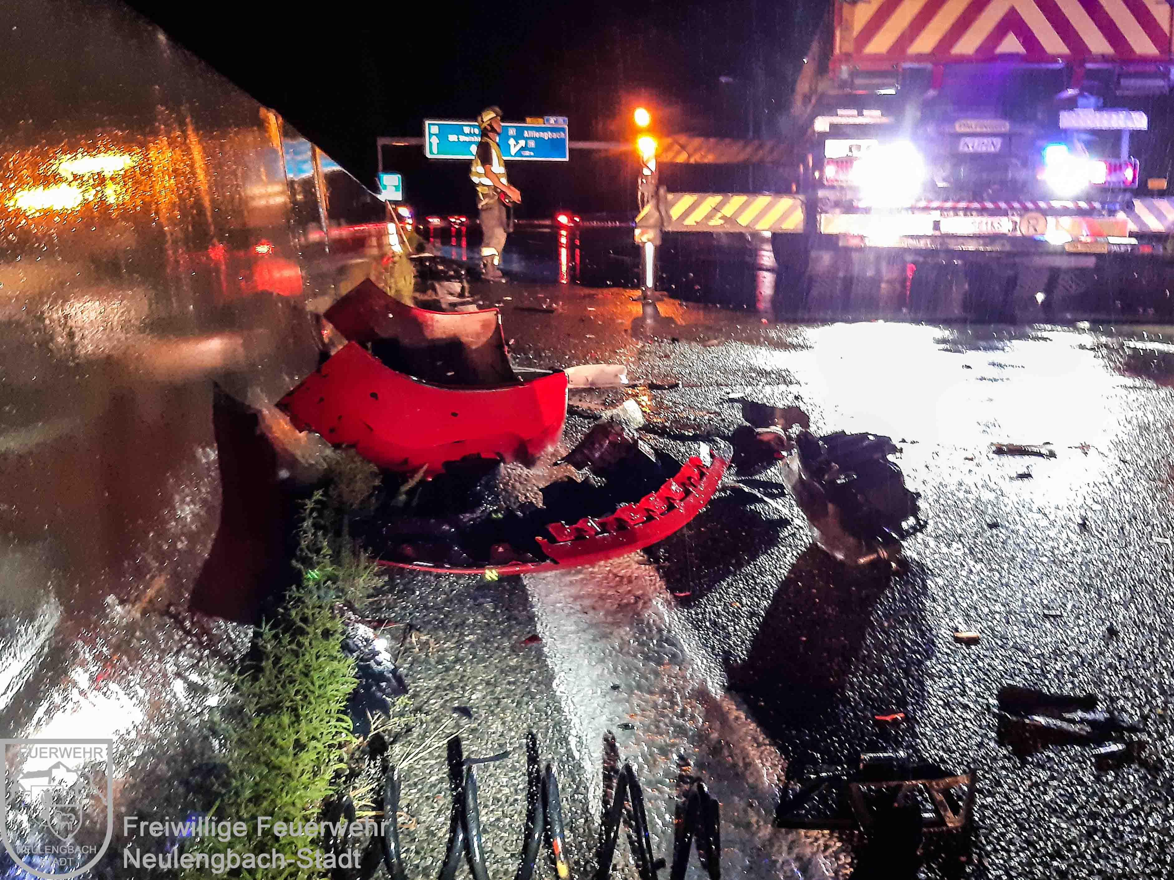 Auf der Anfahrt zu diesem Einsatz wurde ein schwerer Verkehrsunfall mit mehreren beteiligten Fahrzeugen auf der anderen Richtungsfahrbahn festgestellt, zu dem die Freiwillige Feuerwehr St. Pölten-Stadt alarmiert war. Nach der Räumung der Unfallstelle bei km 38 Richtung Salzburg eilten unsere Einsatzkräfte daher sofort zur Einsatzstelle bei km 36 Richtung Wien, um die Kameraden der FF St. Pölten bei den Bergungsarbeiten zu unterstützen. Dort mussten insgesamt drei zum Teil schwer beschädigte PKW und zahlreiche Trümmer und Wrackteile von zweiter und dritter Fahrspur entfernt werden.