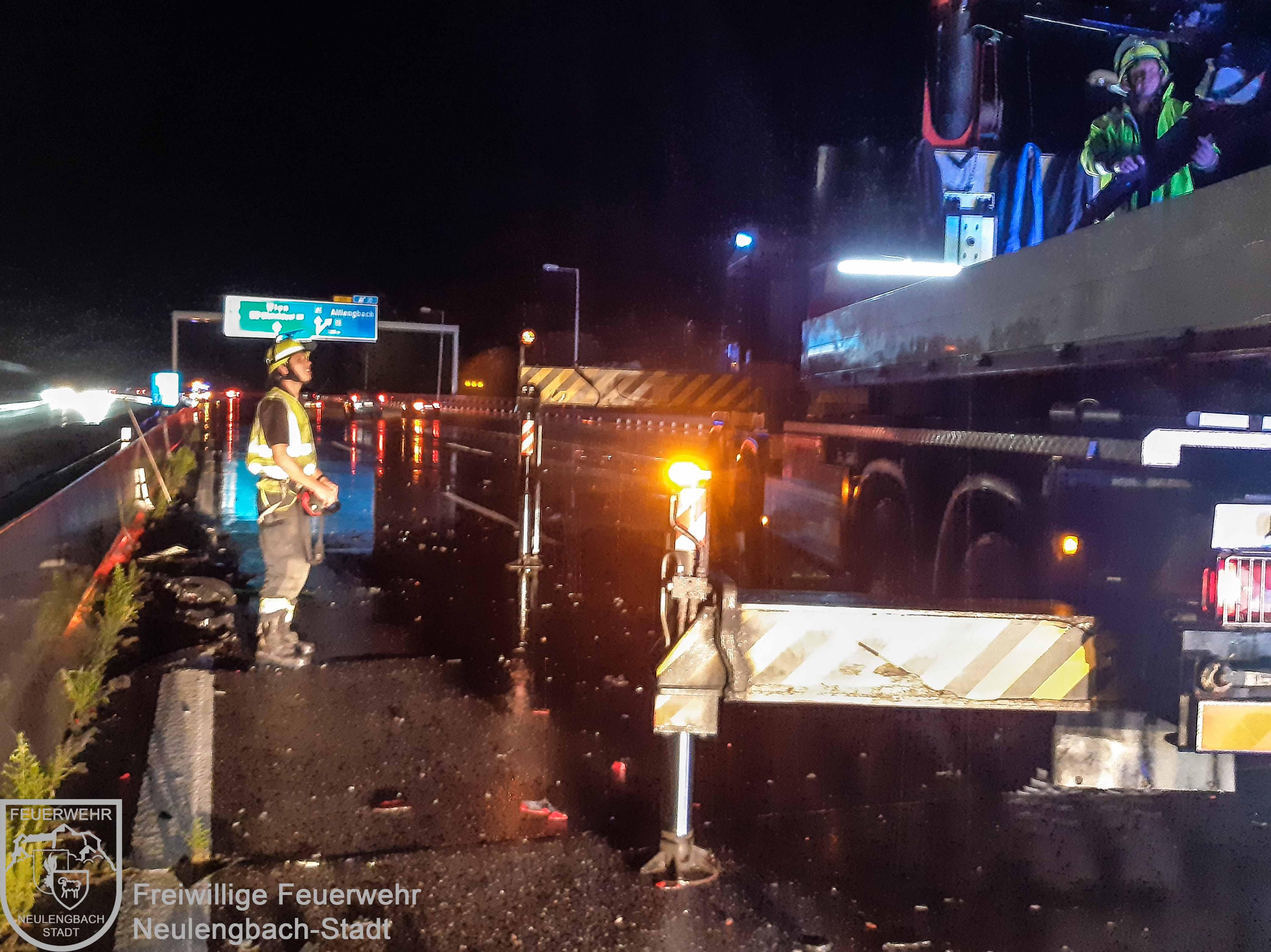 Am 30. August wurde die Freiwillige Feuerwehr Neulengbach-Stadt eine Minute nach Mitternacht zu einer PKW-Bergung auf der Westautobahn alarmiert. Zwischen Altlengbach und St. Christophen (Fahrtrichtung Salzburg) war ein PKW auf der regennassen Fahrbahn ins Schleudern geraten und nach einer Kollision mit den Betonleitelementen des Mittelstreifens auf der Überholspur zu stehen gekommen. Die Bergung des nicht mehr fahrbereiten PKW erfolgte mit der absetzbaren Mulde und der elektrischen Seilwinde des Wechselladefahrzeugs.