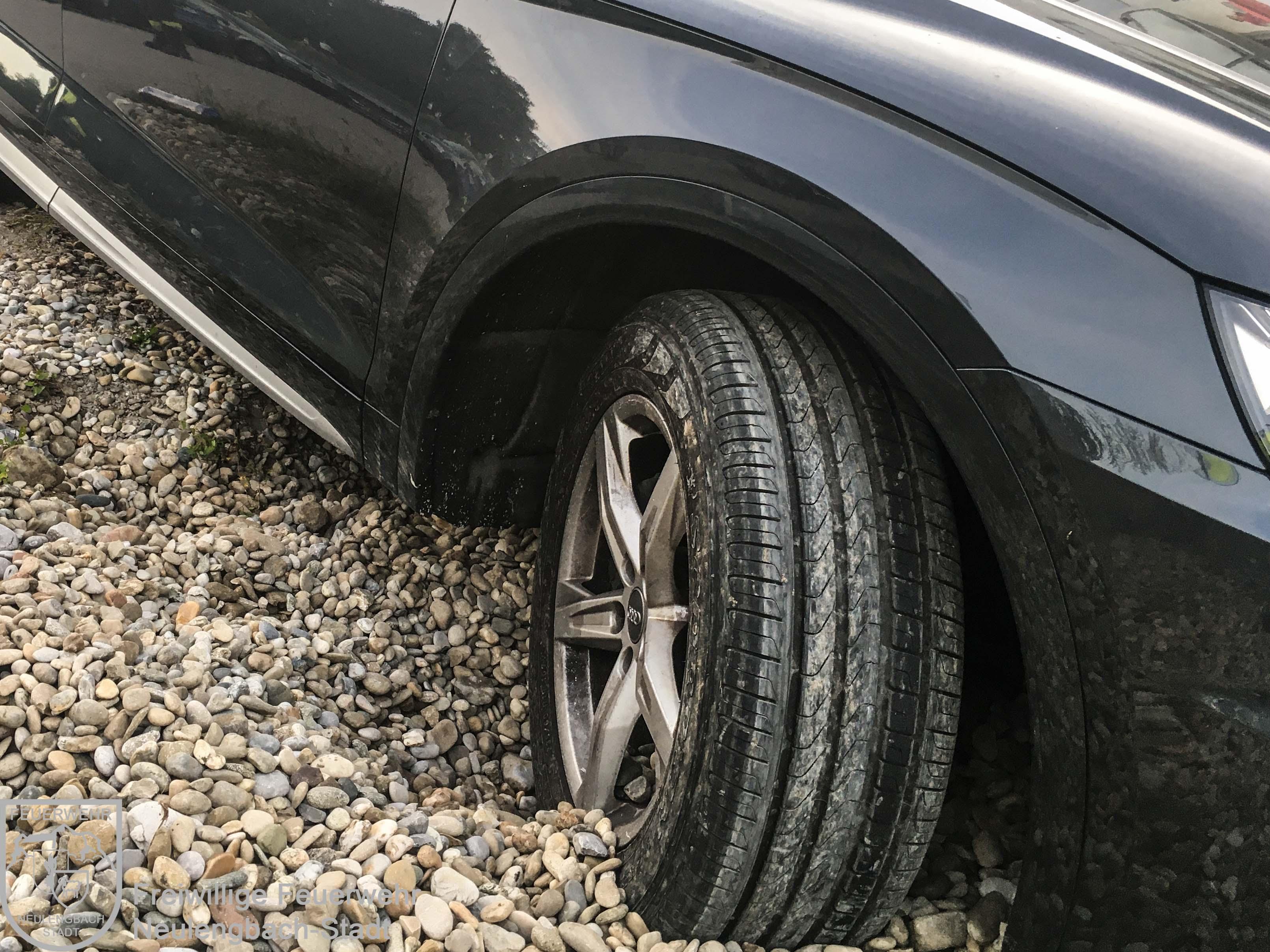 Am 13. September wurden mehrere zufällig im Feuerwehrhaus anwesende Kameraden von Anrainern der Leopold-Kucher-Straße persönlich zu einer PKW-Bergung alarmiert. Ein PKW war am Parkplatz der Wohnhausanlage in die Wasserversickerungsmulde geraten und mit der Vorderachse im Rollschotter stecken geblieben.