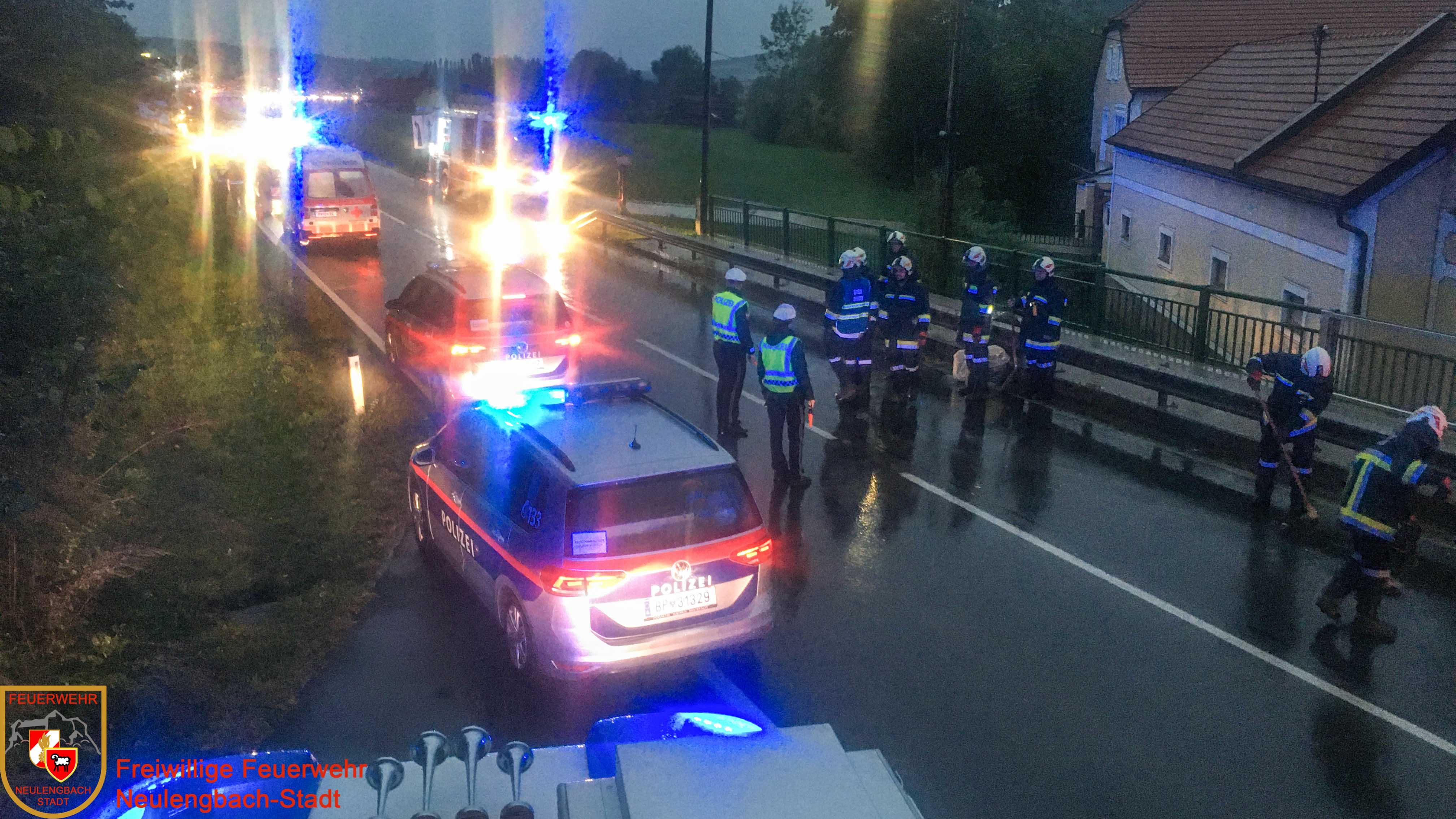 Am 16. Oktober wurde die Freiwillige Feuerwehr Neulengbach-Stadt um 06:54 Uhr mit der Meldung "Verkehrsunfall mit einer eingeklemmten Person" alarmiert. Während der Anfahrt zum Einsatzort auf der B19 Höhe Alte Mühle kam von den ersteingetroffenen Einsatzkräften der Feuerwehr Asperhofen per Funk die Meldung, dass keine Personen mehr in den Fahrzeugen eingeschlossen oder eingeklemmt sind. Daraufhin wurde das Wechselladefahrzeug in Marsch gesetzt, um die Kameraden der FF Asperhofen bei der Bergung der Unfallfahrzeuge zu unterstützen.