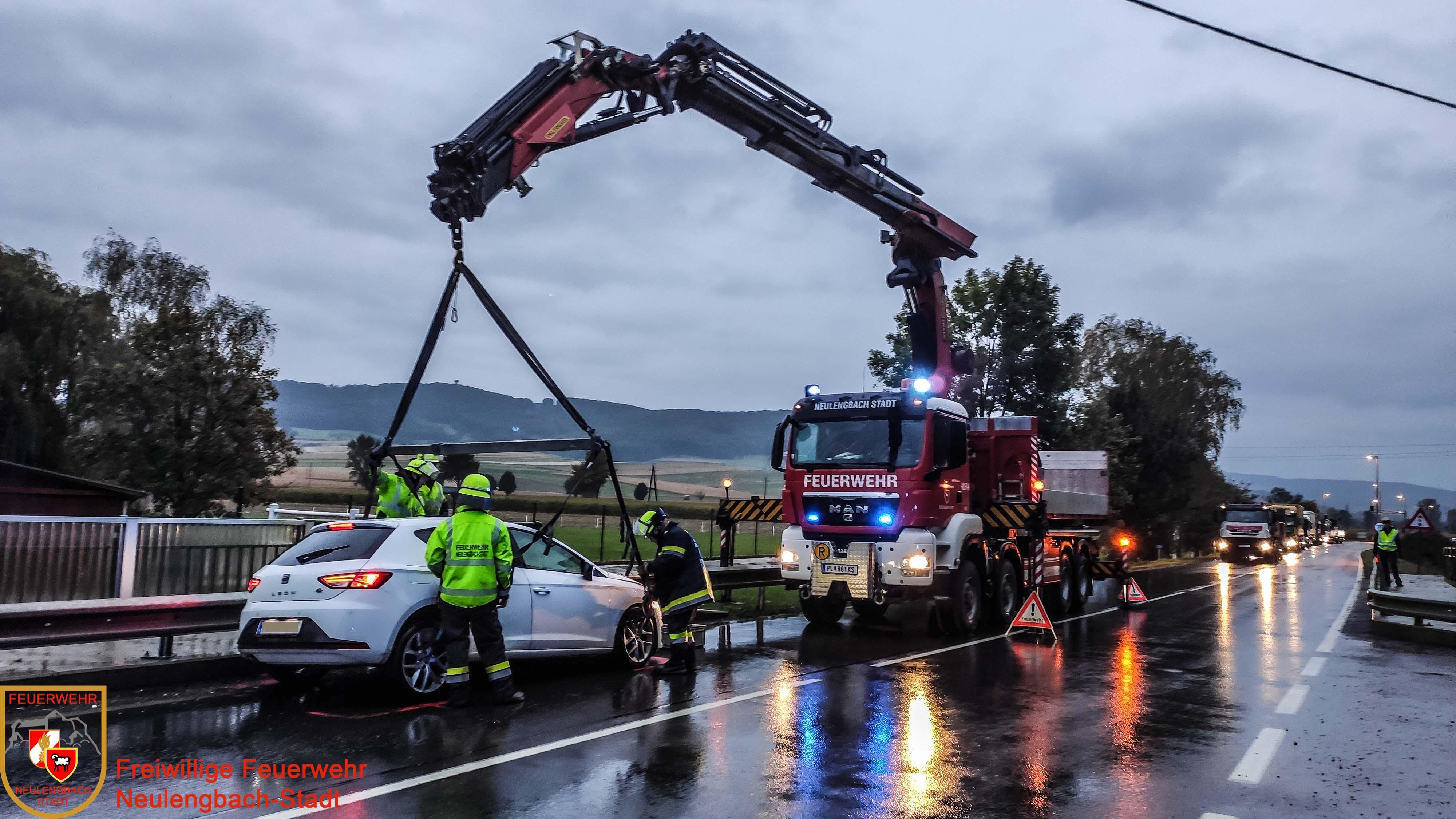 Einer der beiden beschädigten PKW wurde von der Mannschaft der FF Asperhofen per Rangierroller von der Fahrbahn entfernt, das andere Unfallauto konnte von den Einsatzkräften der FF Neulengbach-Stadt mit dem Ladekran des Wechselladefahrzeugs geborgen und im Anschluß abtransportiert werden.