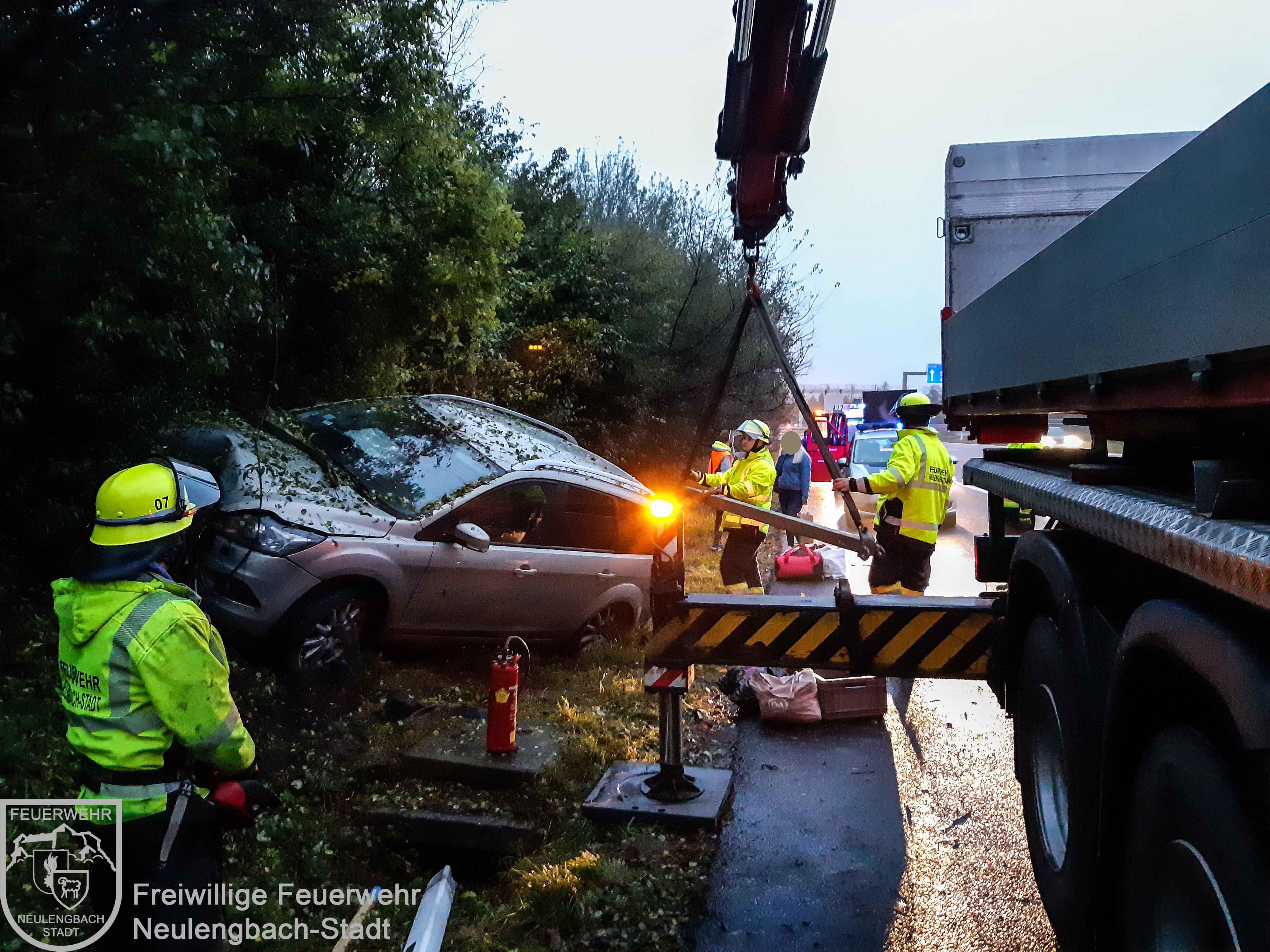 Die Bergung des nicht mehr fahrbereiten PKW erfolgte mit dem Kran des Wechselladefahrzeugs. Das Unfallfahrzeug wurde von der Autobahn abtransportiert und an geeigneter Stelle gesichert abgestellt.