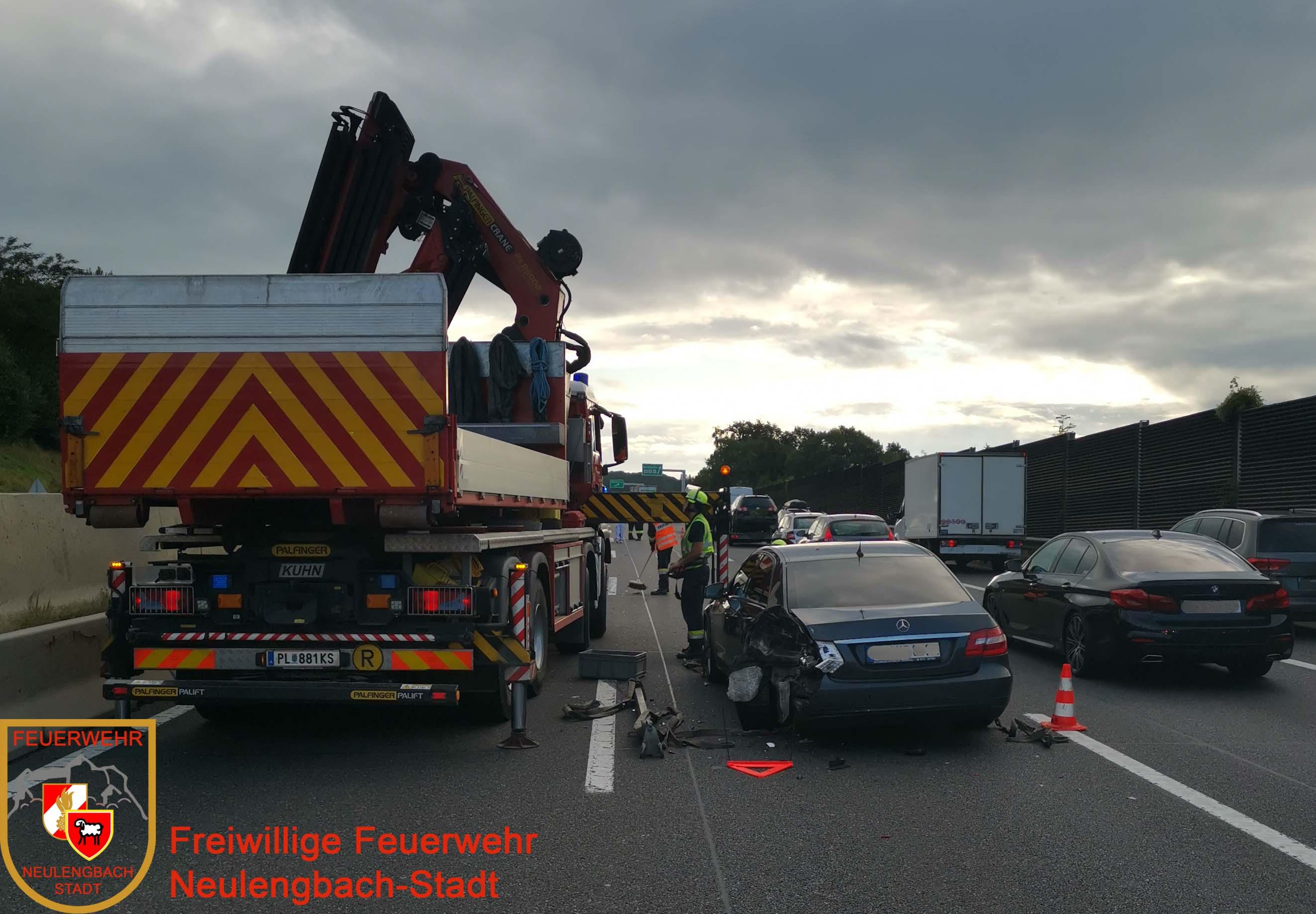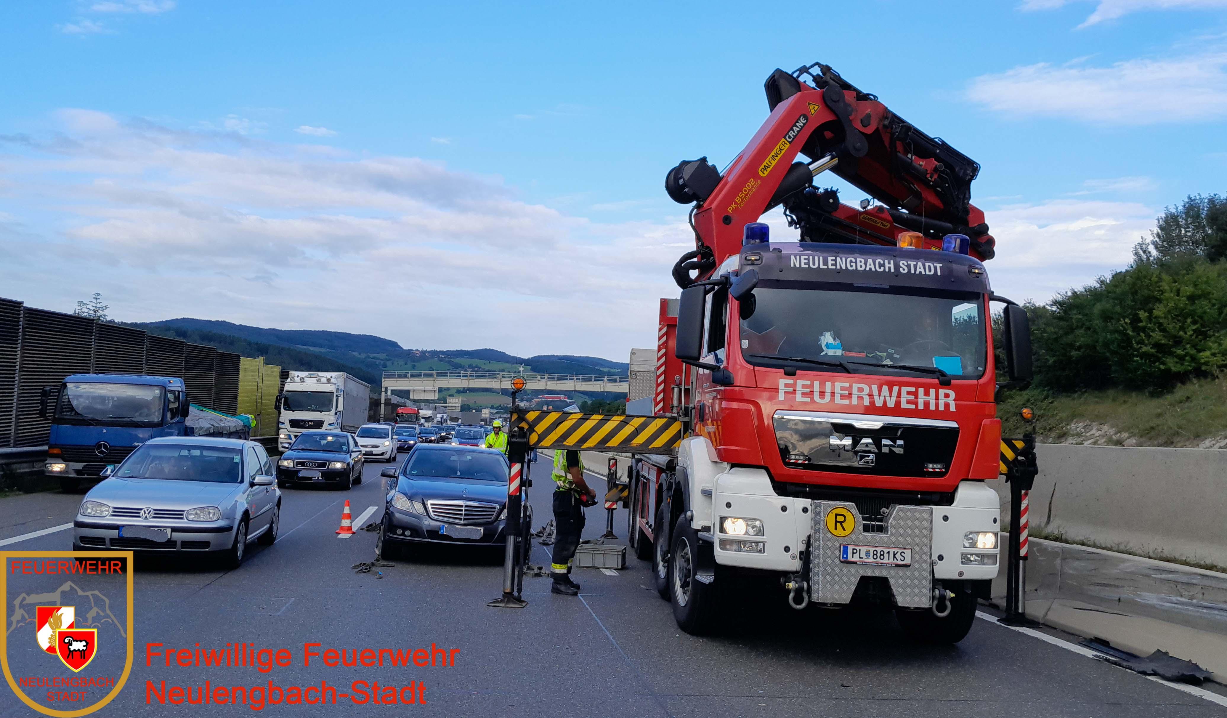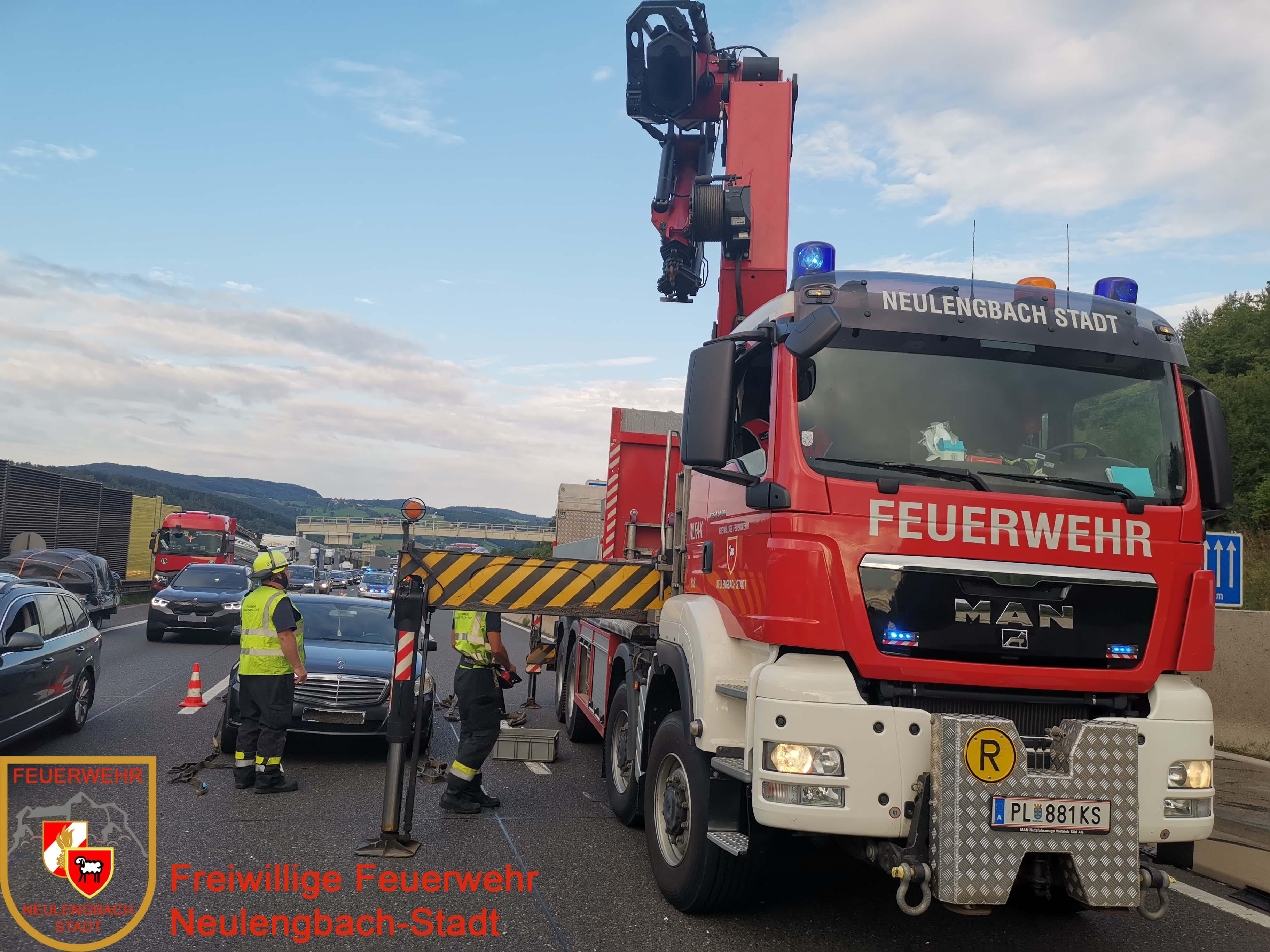 Am 28.08.2021 wurde die Freiwilligen Feuerwehr Neulengbach-Stadt um 07:36 Uhr zu einer PKW Bergung auf die A1 kurz vor der Raststation Steinhäusl alarmiert.