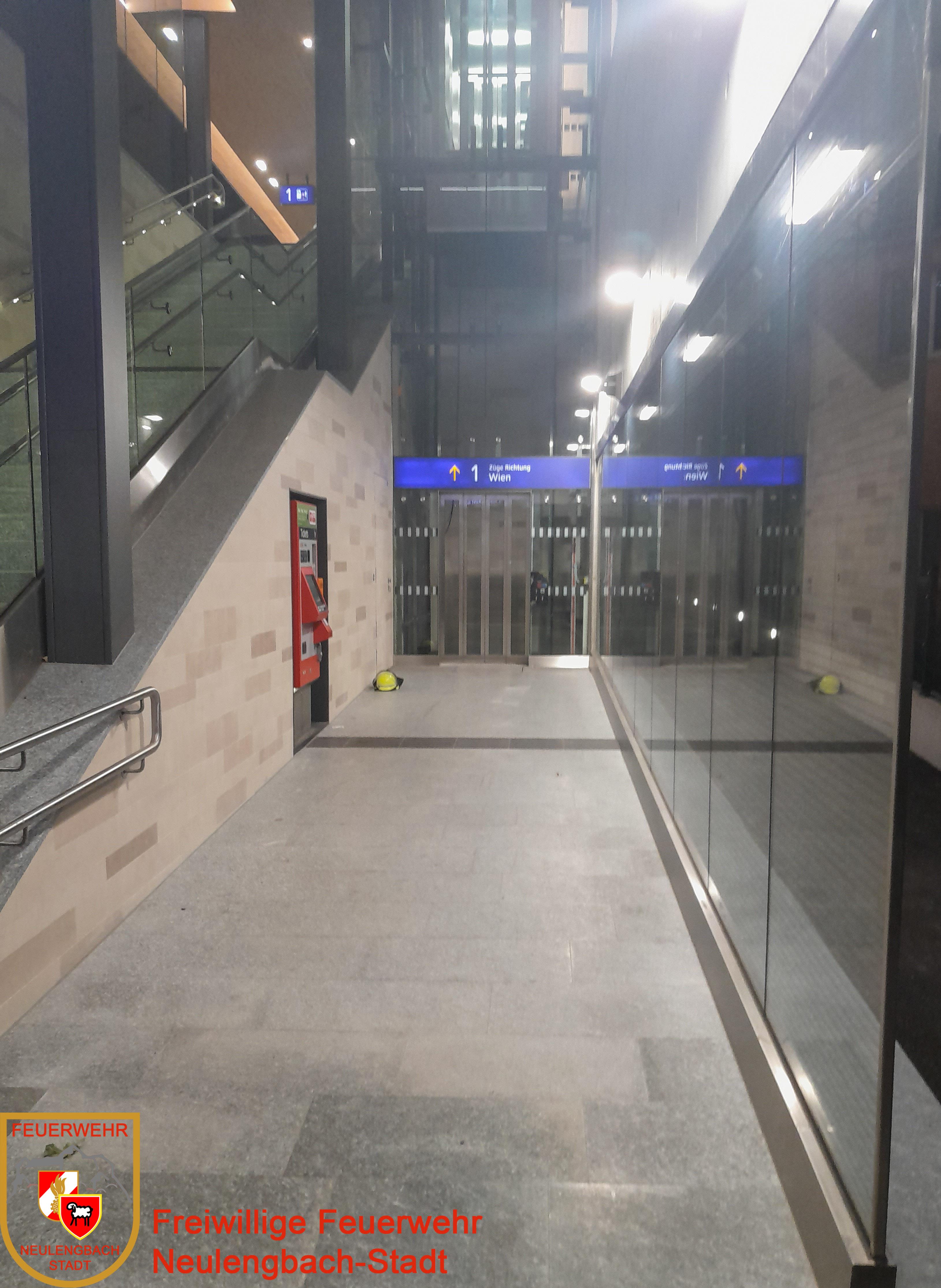 Am 01.10.2021 um 22:42 Uhr wurde die Freiwillige Feuerwehr Neulengbach-Stadt zu einer im Aufzug eingeschlossenen Person am Bahnhof Neulengbach-Stadt alarmiert.