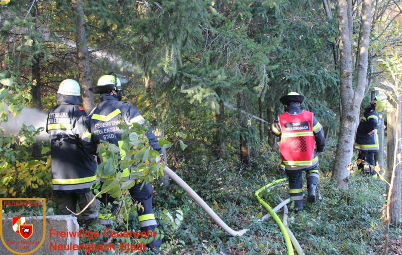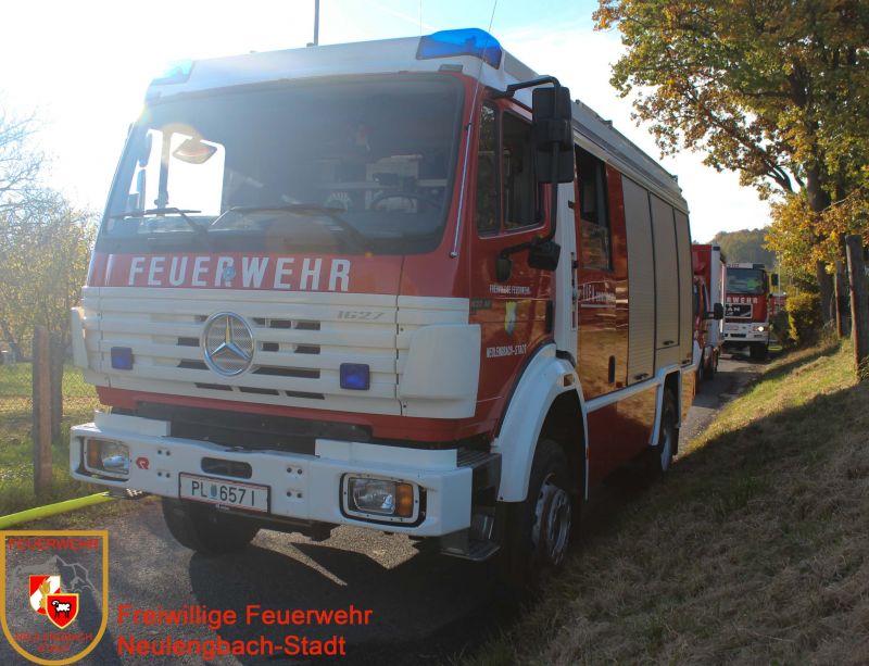 Das Löschfahrzeug der Freiwilligen Feuerwehr Neulengbach-Stadt hatte die Aufgabe eine Relaisleitung zum Brandobjekt zu legen, um die Wasserversorgung auf der schmalen Zufahrt zu gewährleisten.