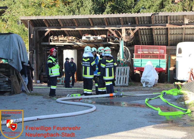 Übungsannahme für die Freiwilligen Feuerwehren Raipoltenbach, Inprugg, Markersdorf und Neulengbach-Stadt war ein Brand eines landwirtschaftlichen Objektes, der auf den angrenzenden Wald Übergriff. Dabei galt es unter schwerem Atemschutz vermisste Personen zu finden und die Brandbekämpfung durchzuführen.