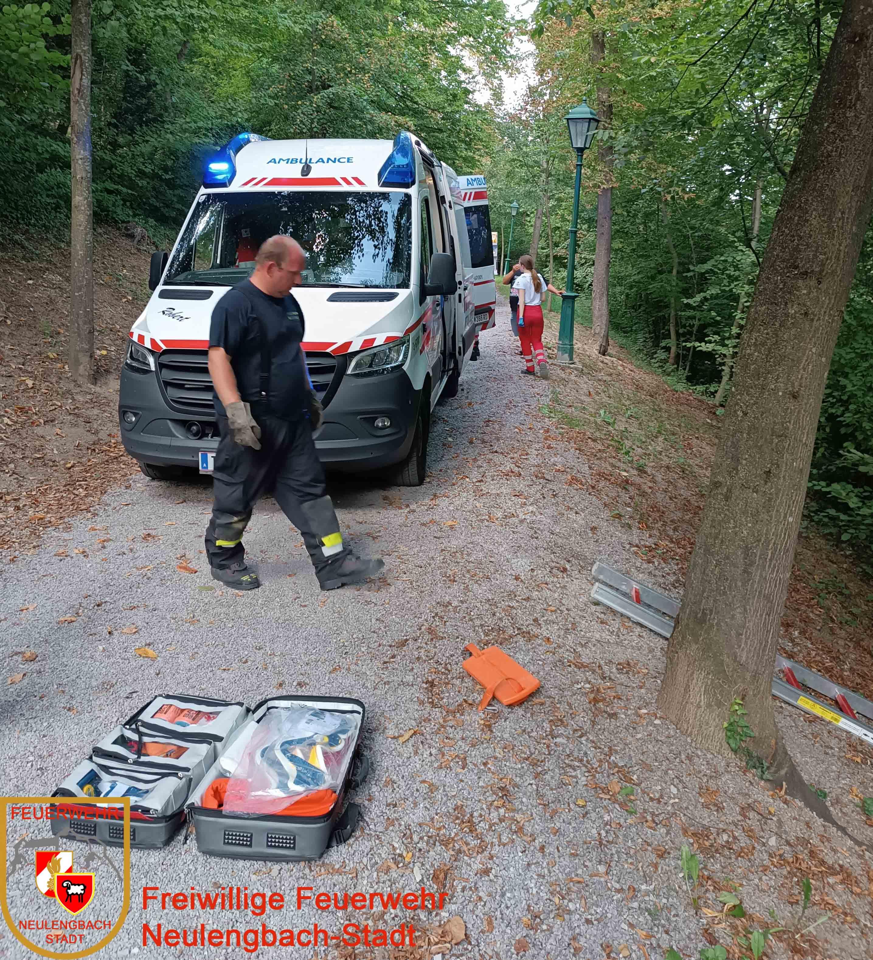 Am 25.08.2024 um 16:10 Uhr wurde die Freiwillige Feuerwehr Neulengbach-Stadt zur Unterstützung des Rettungsdienstes in den Schloßpark alarmiert. Beim Ausrücken wurde uns durch die Bereichsalarmzentrale St. Pölten mitgeteilt, dass eine Person über die Böschung gestürzt ist. Bei Eintreffen mit dem Vorausrüstfahrzeug war der Rettungsdienst bereits bei der Person und betreute Sie. Um auf der Böschung gesichert auf und abzukommen wurden Steckleiternteile aufgelegt. In gewohnt guter Zusammenarbeit wurde die Person auf ein Spineboard fixiert, danach in die Korbschleiftrage gehoben. Diese wurde mittels eines Seiles hochgezogen so konnte in kürzester Zeit die Person dem Rettungsdienst übergeben werden. Dieser brachte zur weiteren Abklärung die gestürzte Person in ein Krankenhaus.